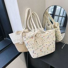 夏天小众草编包包女2024新款潮棉线编织包沙滩包大容量单肩篮子包
