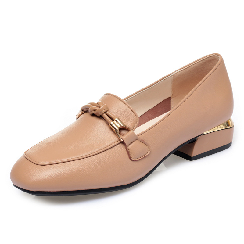 2025 새로운 싱글 가죽 신발 깊은 입 가죽 우아한 통근 두꺼운 뒤꿈치 가죽 신발 캐주얼 낮은 굽 통기성 여성 신발스토어 가기