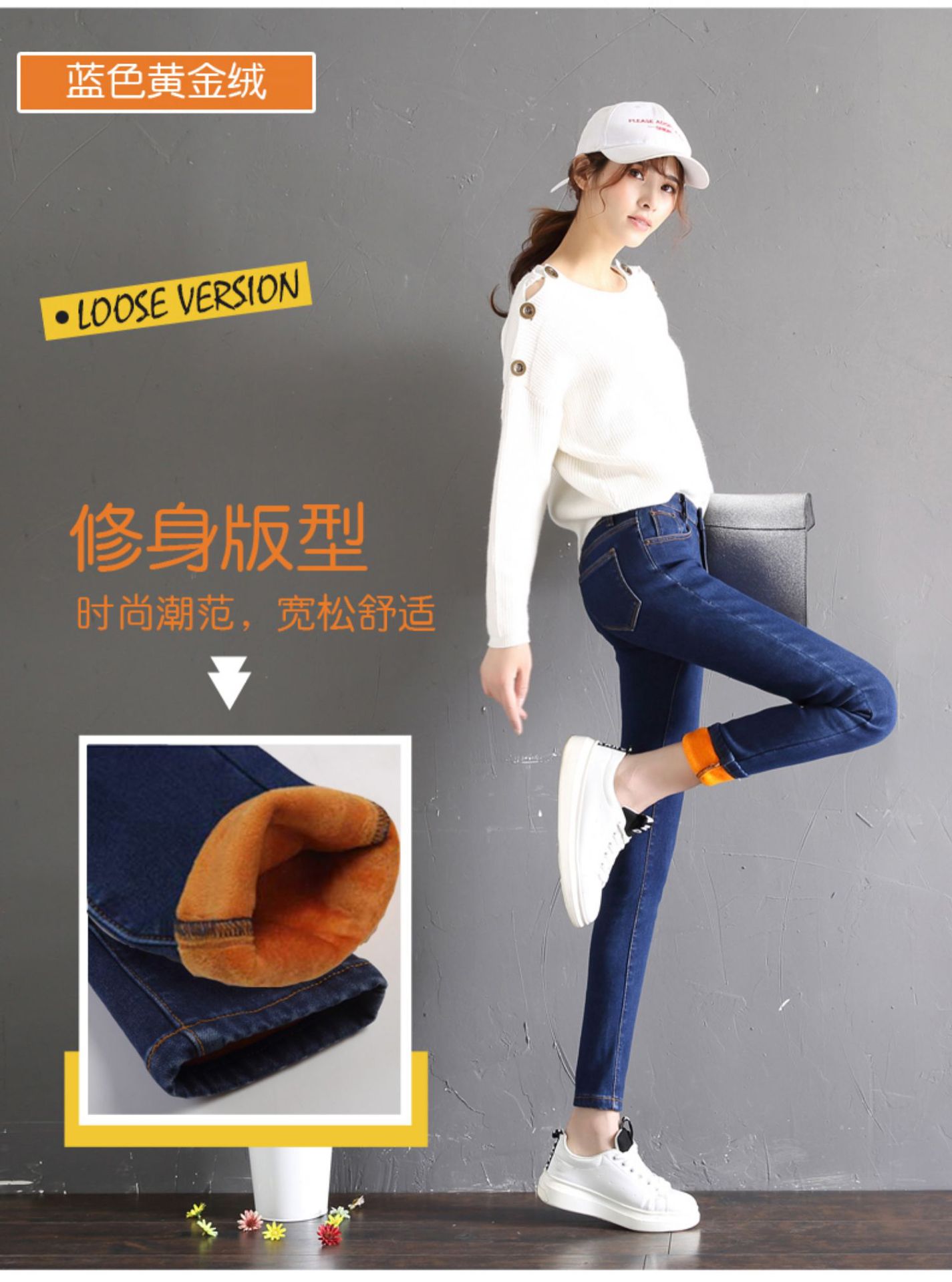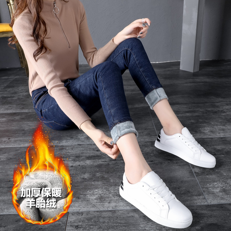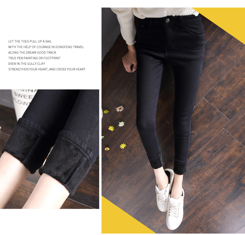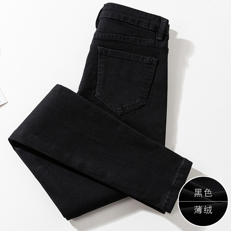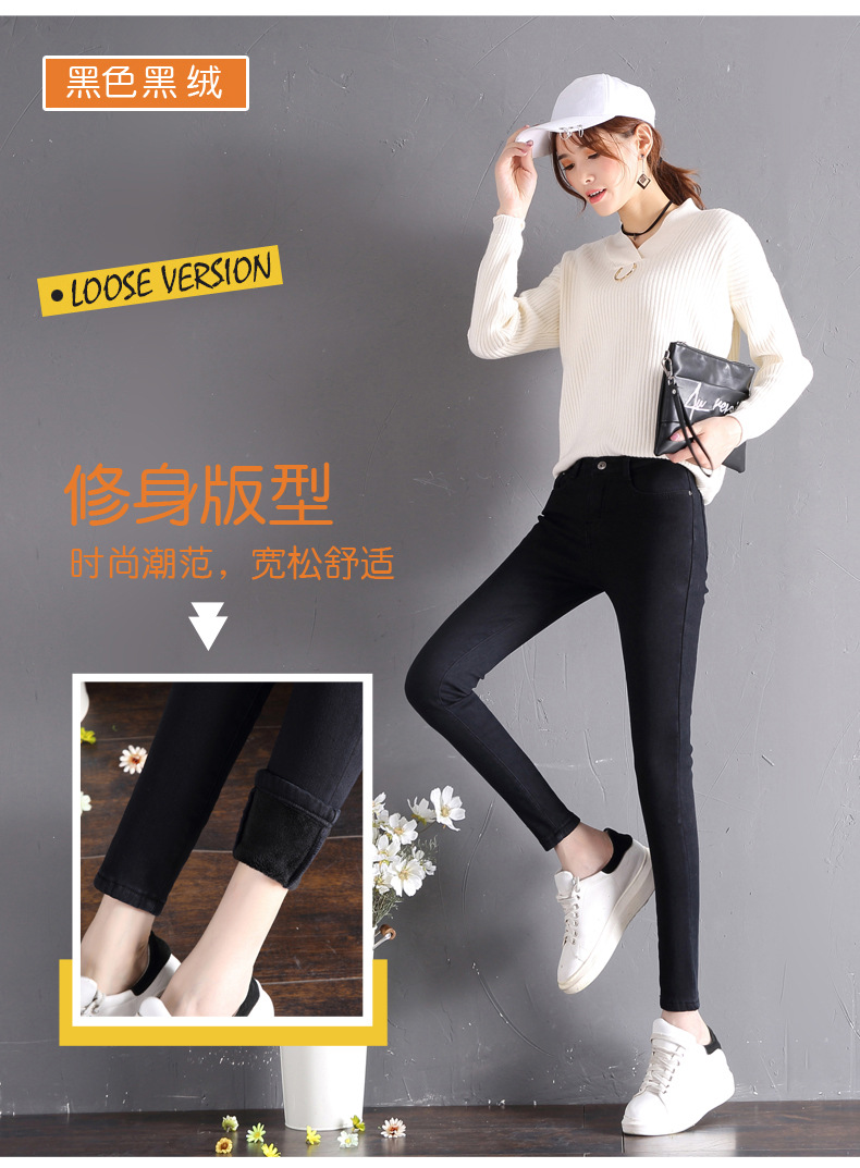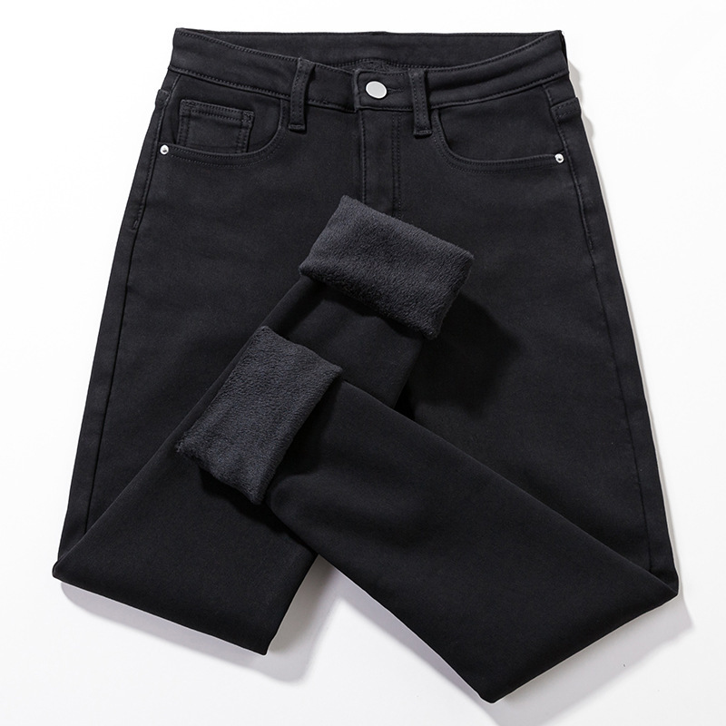 2025 겨울용 기모 하이웨이스트 데님 팬츠 여성 슬림핏 아우터용 펜슬 팬츠 여성용 신축성 두꺼운 트렌디 빅사이즈스토어 가기