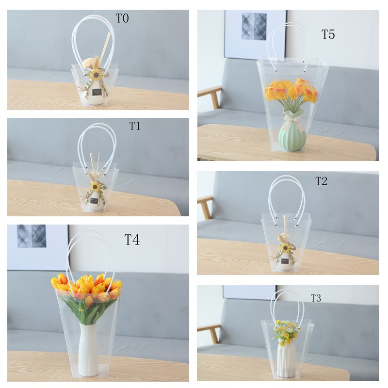 도매 토트 백 사다리 꽃다발 포장 가방 선물 가방 투명 크리스마스 PP 신선한 말린 꽃다발 녹색 식물 토트 백