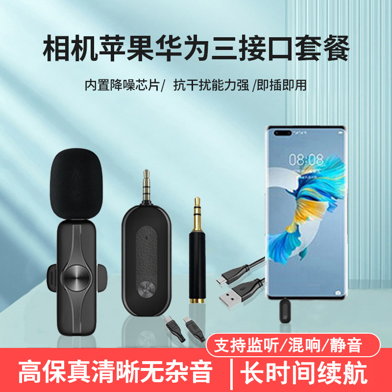 跨境新款领夹式户外直播吃播优选,2.4GWIFI无线收音麦克风,抖音快手降噪小话筒
