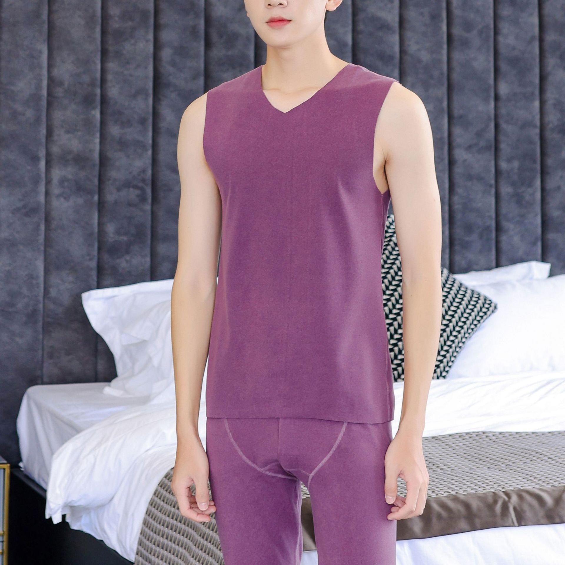 남성용 이음매없는 슬림핏 따뜻한 솔리드 컬러 투피스 가을과 겨울 양이온 벨벳 브이넥 조끼 롱 존스 세트스토어 가기