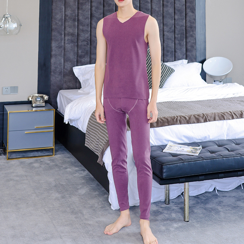 남성용 이음매없는 슬림핏 따뜻한 솔리드 컬러 투피스 가을과 겨울 양이온 벨벳 브이넥 조끼 롱 존스 세트