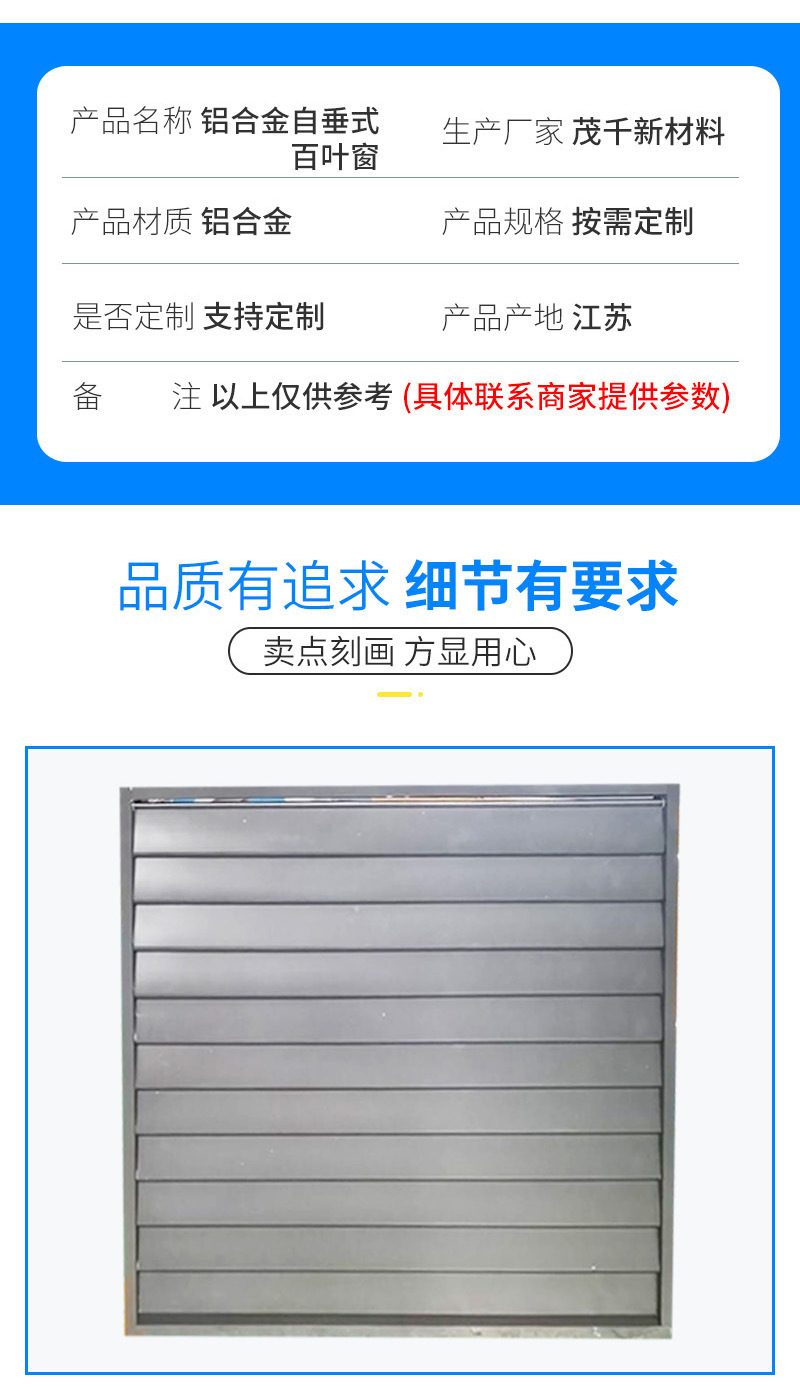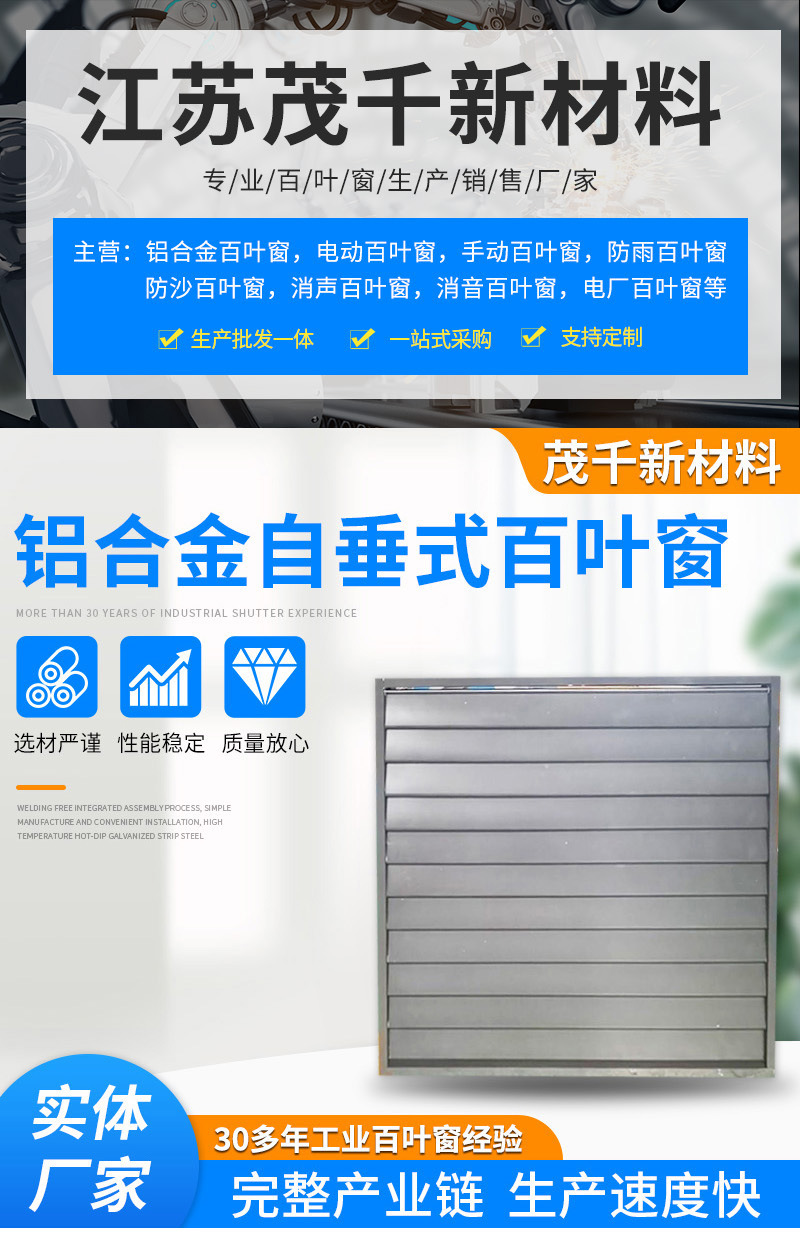 알루미늄 합금 자체 교수형 루버 50 두꺼운 블레이드 자동 개방 장비 환기 자체 교수형 루버스토어 가기