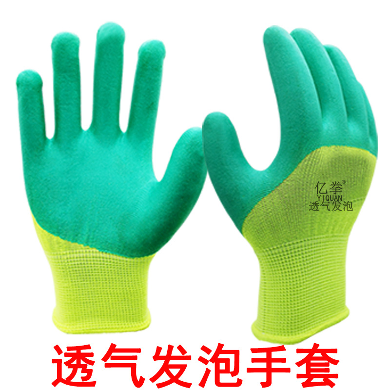 노동 보호 장갑, 내마모성, 통기성, 손가락 보호 강화, 형광사, 녹색 고무 코팅, 미끄럼 방지스토어 가기