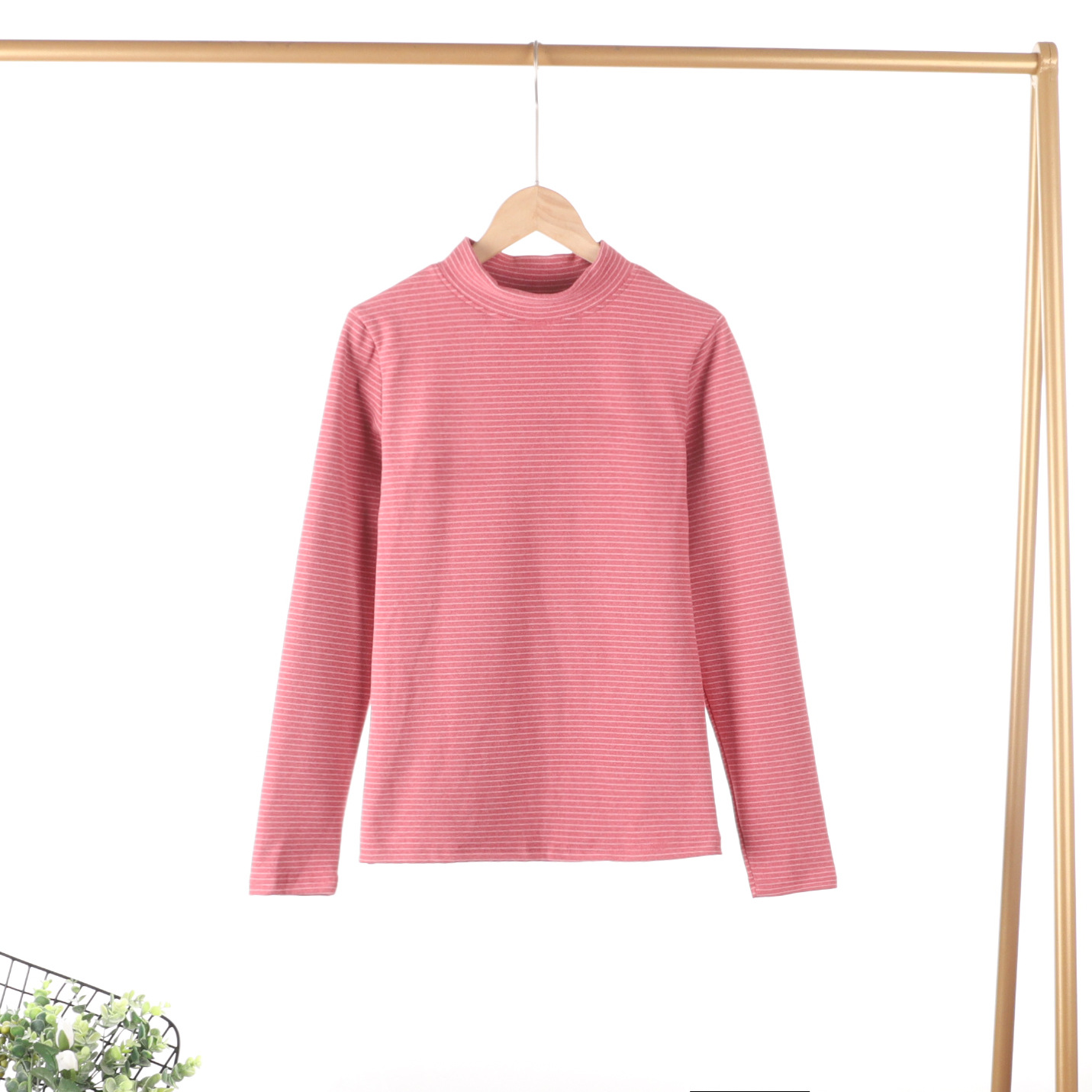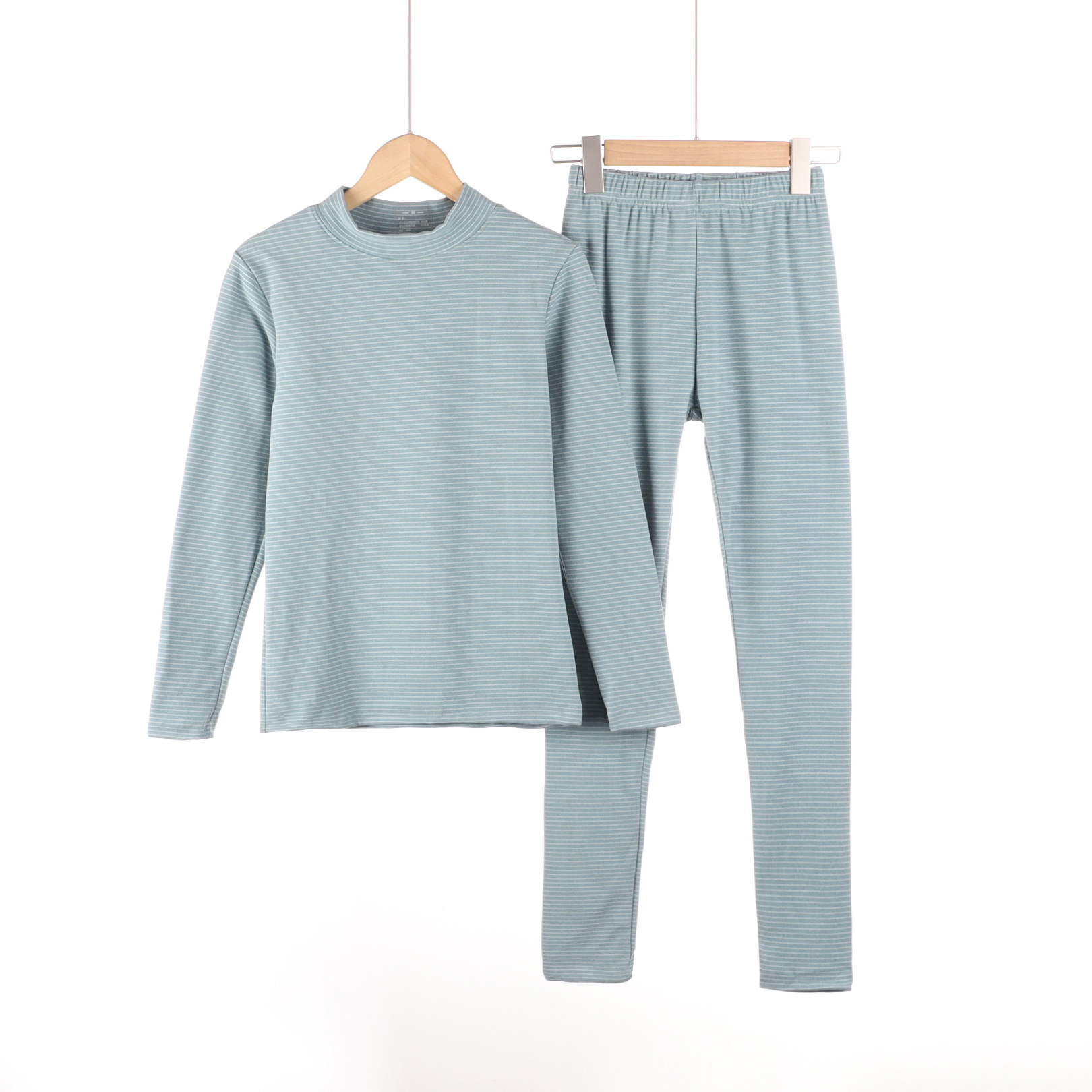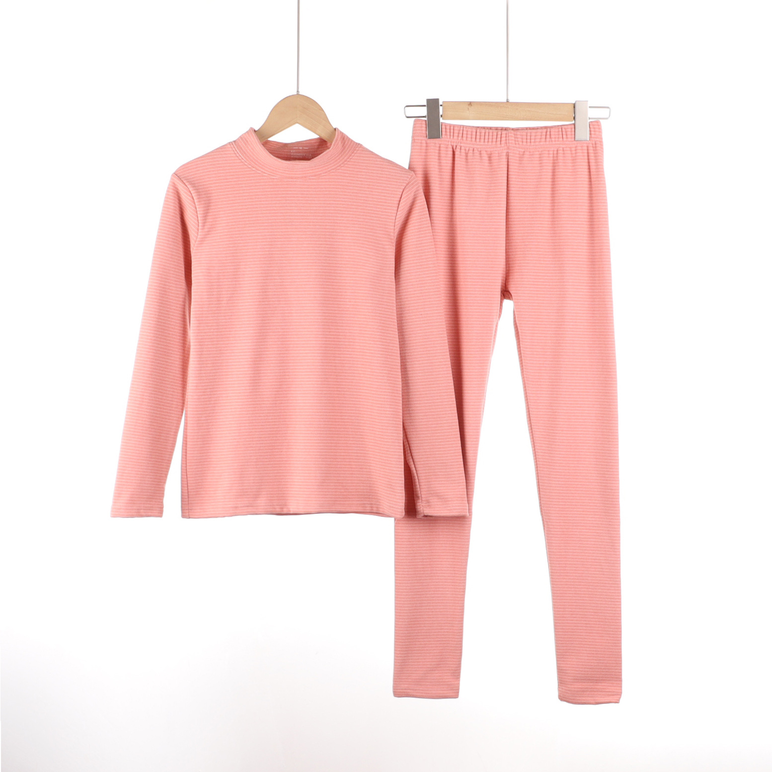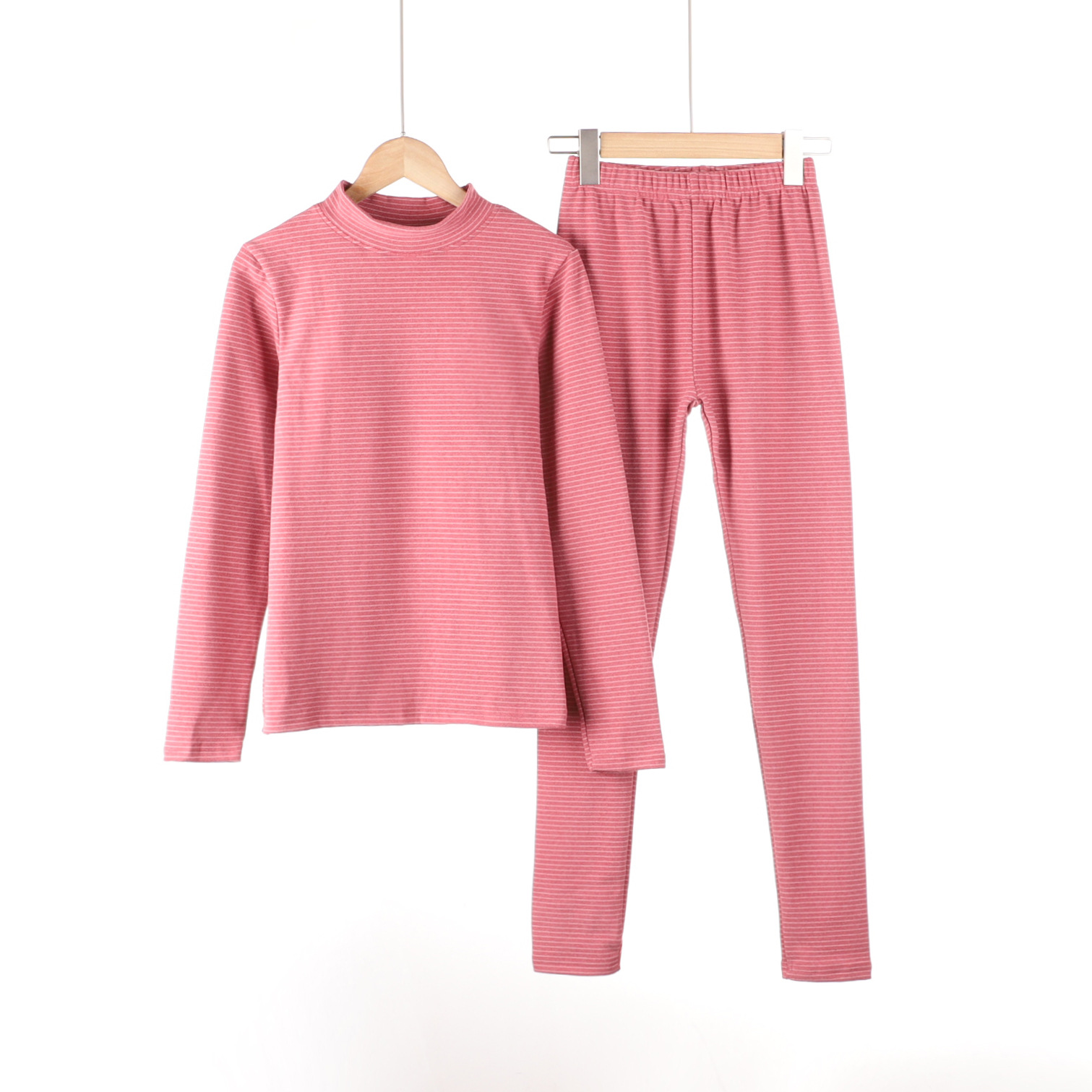 가을과 겨울 새로운 스트라이프 세미 하이 넥 슬림 핏 따뜻한 투피스 양면 벨벳 상수 뜨거운 가을 옷과 바지 세트
