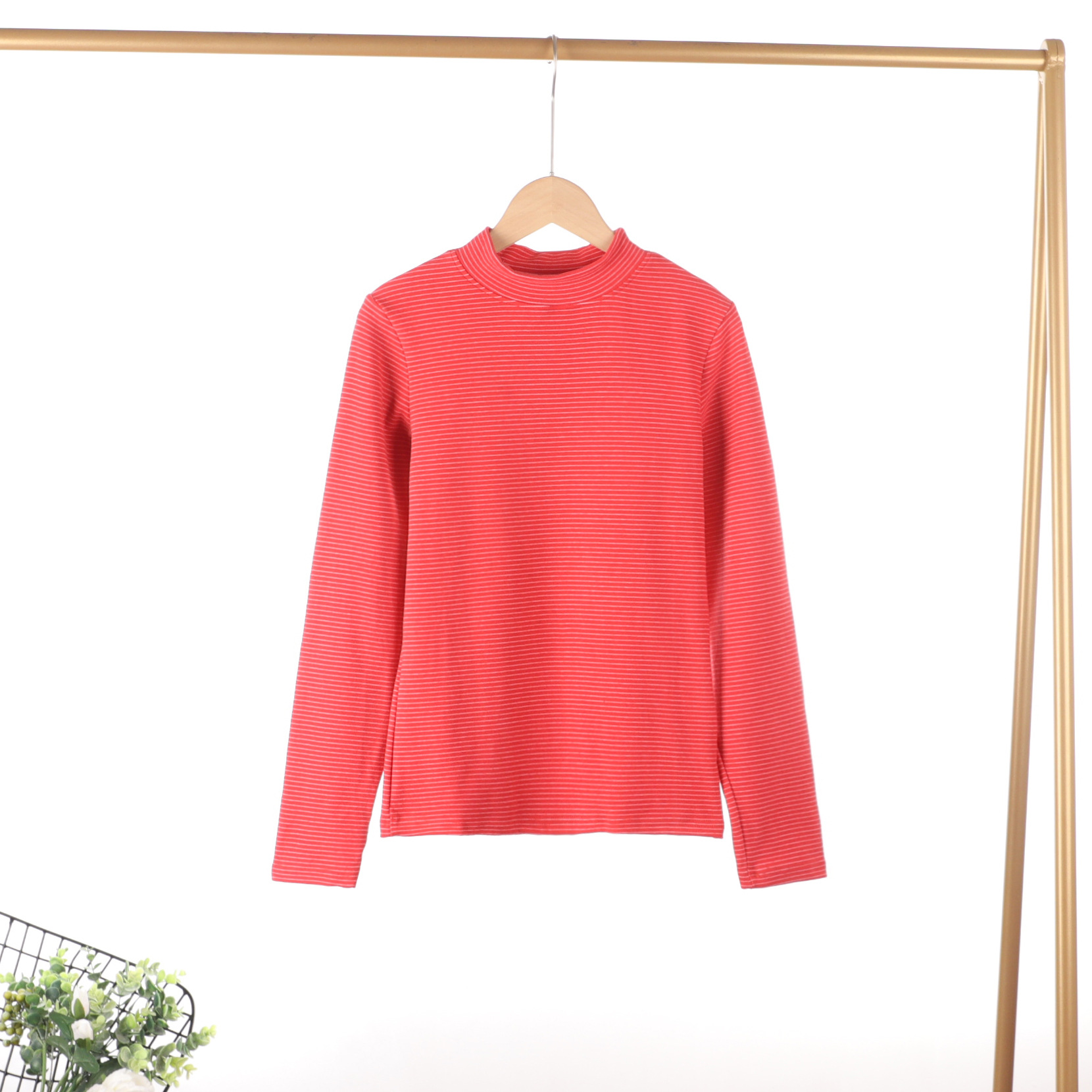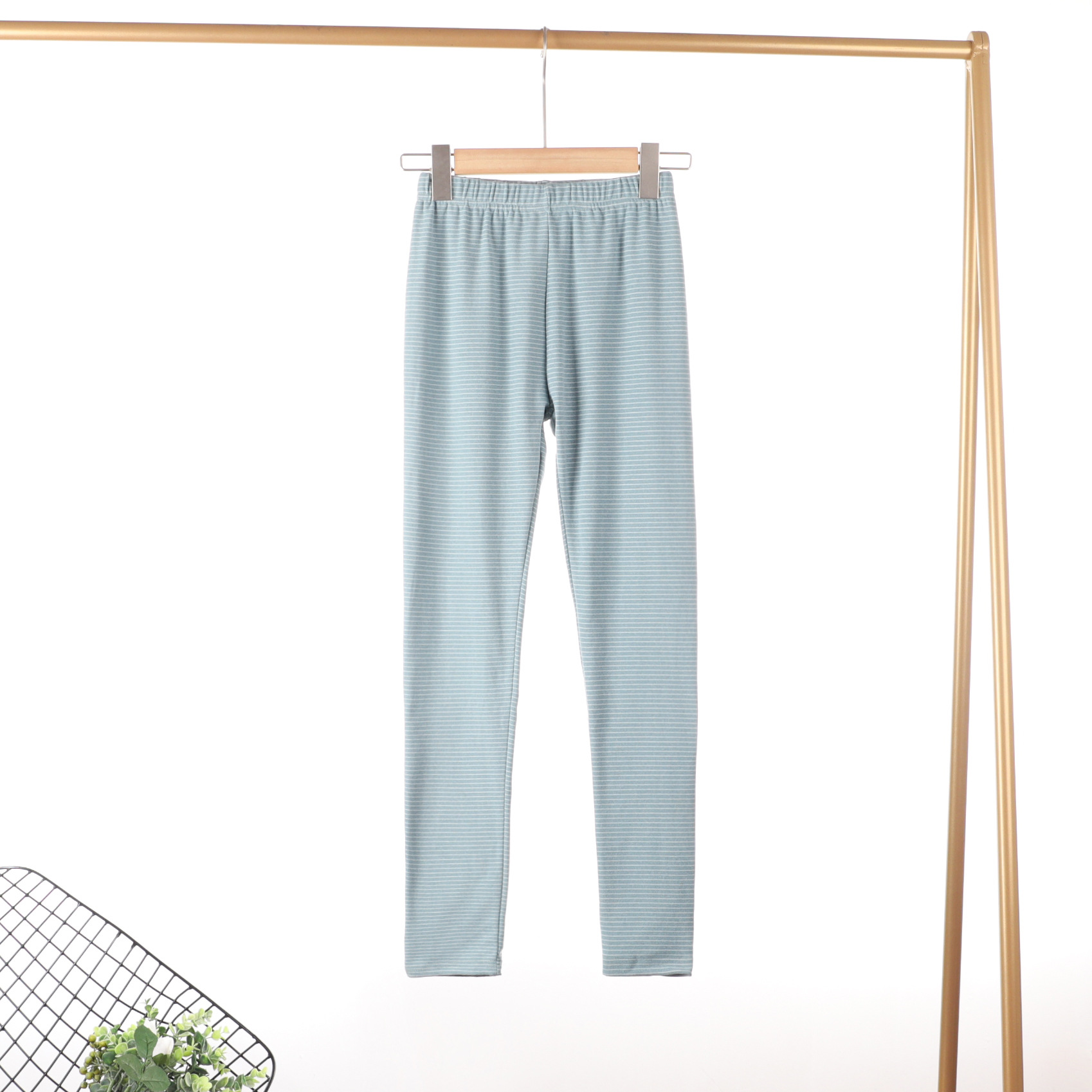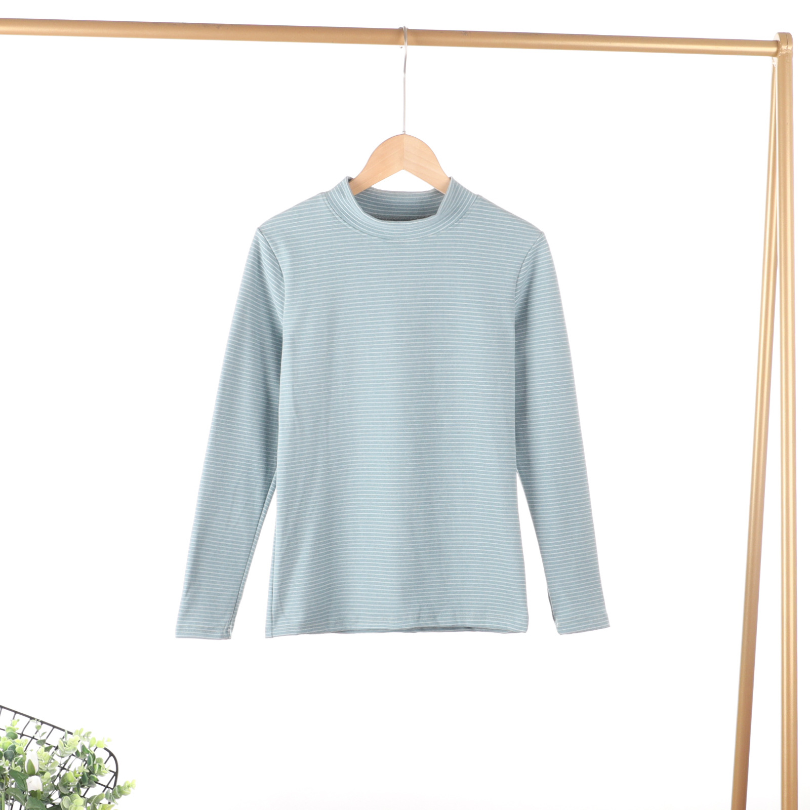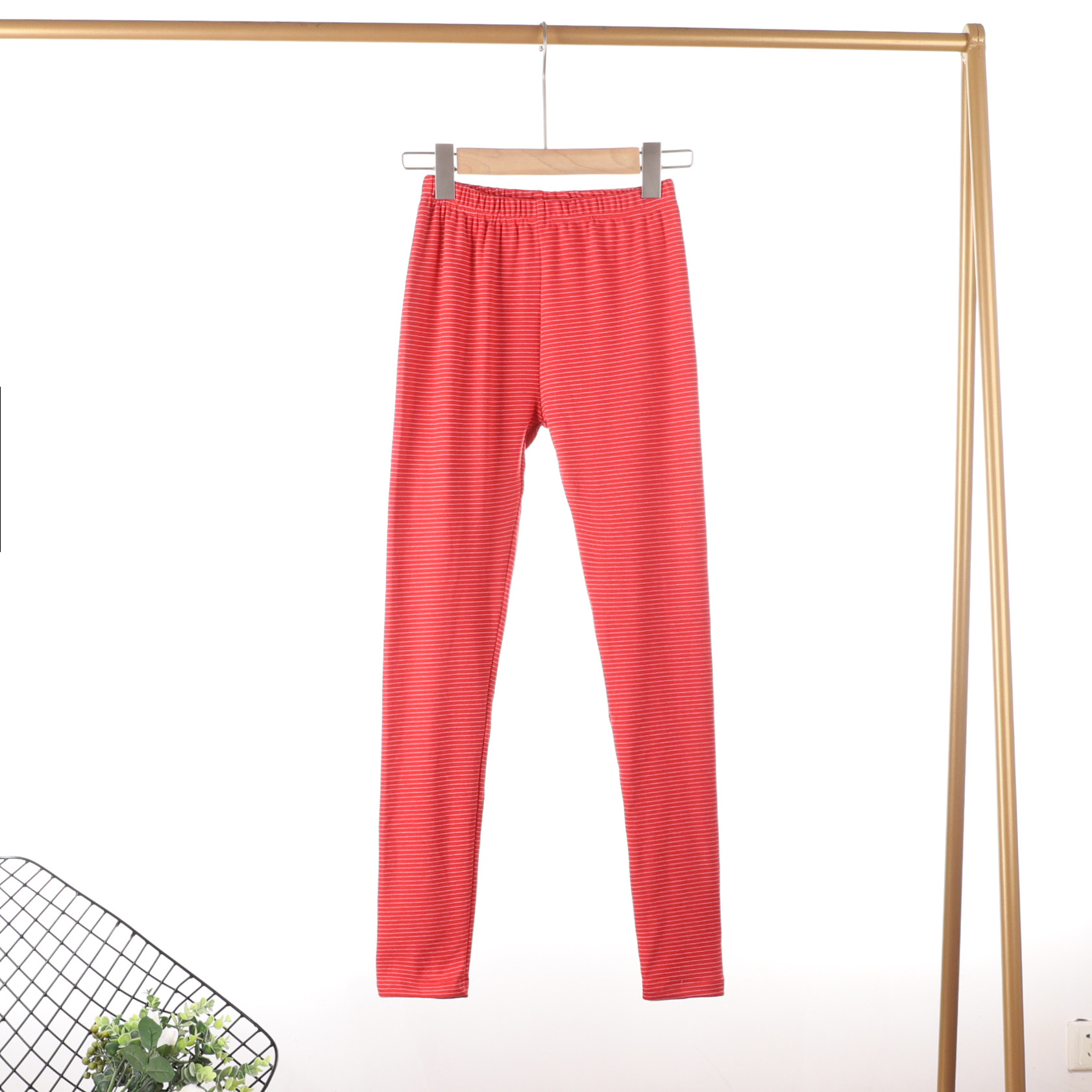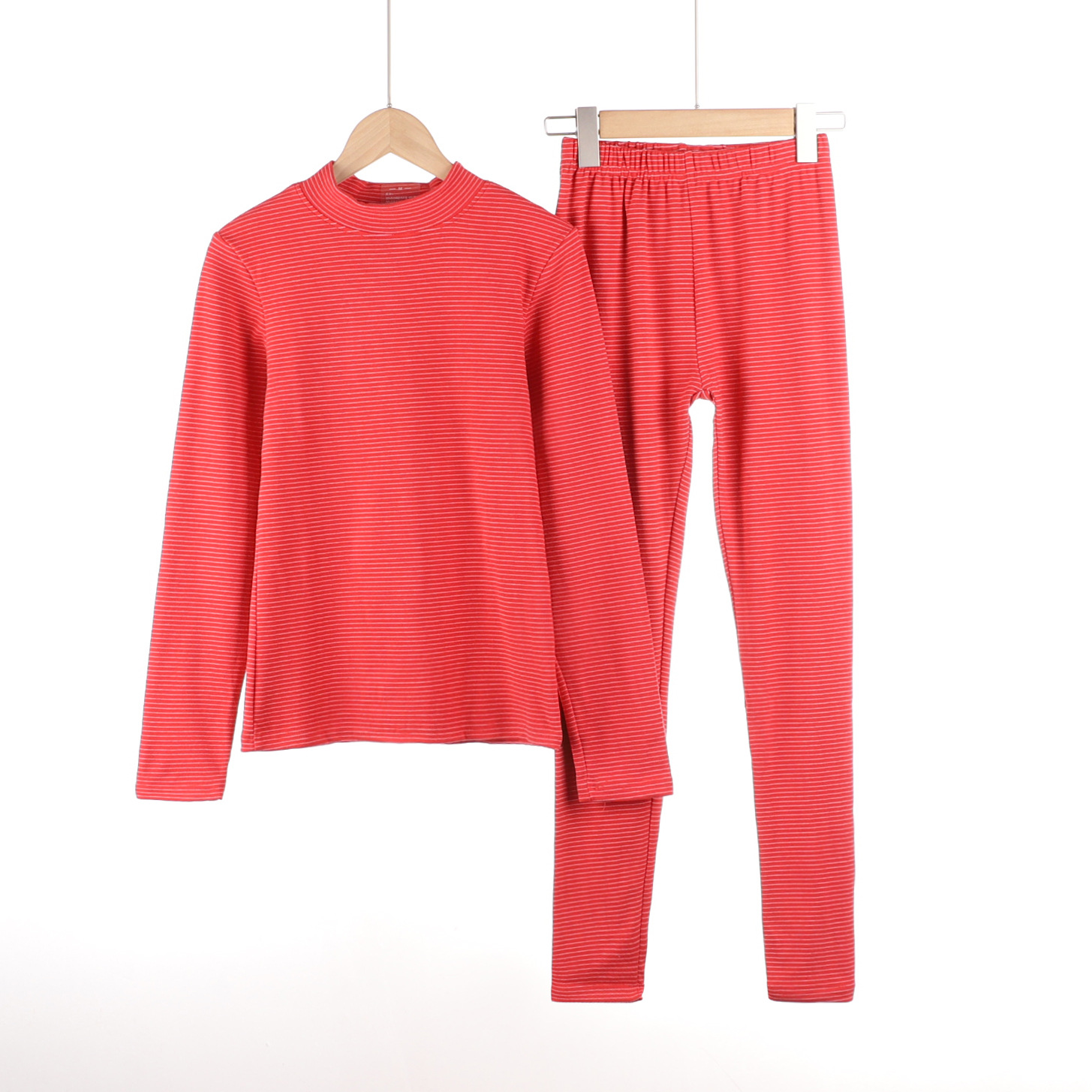 가을과 겨울 새로운 스트라이프 세미 하이 넥 슬림 핏 따뜻한 투피스 양면 벨벳 상수 뜨거운 가을 옷과 바지 세트