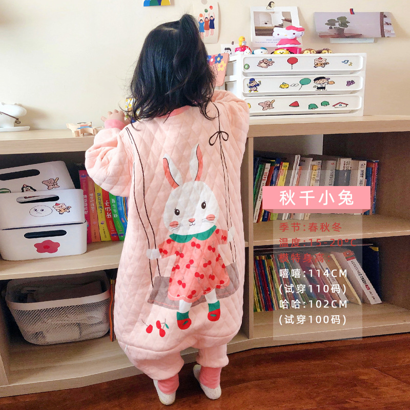 Huxibei 5 층 따뜻한 다리 어린이 침낭 봄 가을과 겨울 얇은면 아기 킥 방지 가정 옷 아기 잠옷