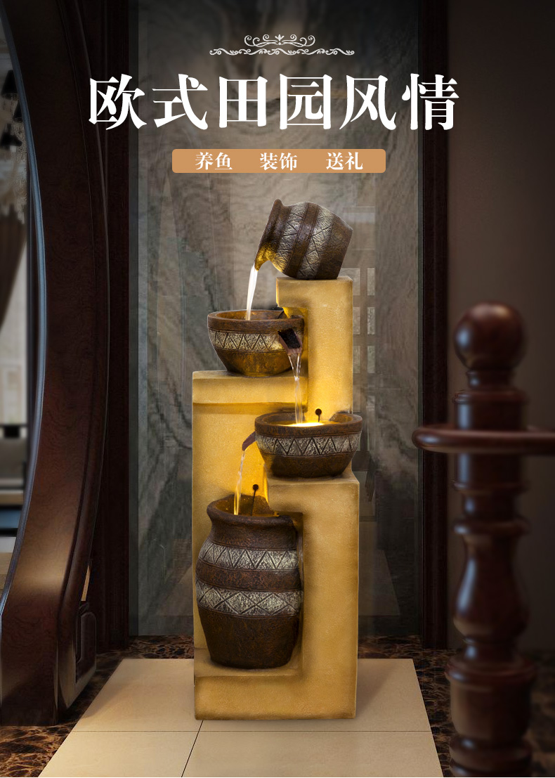 대형 풍수 공 자동 순환 분수 풍경 장식 바닥 유럽 스타일 실내 거실 발코니 장식