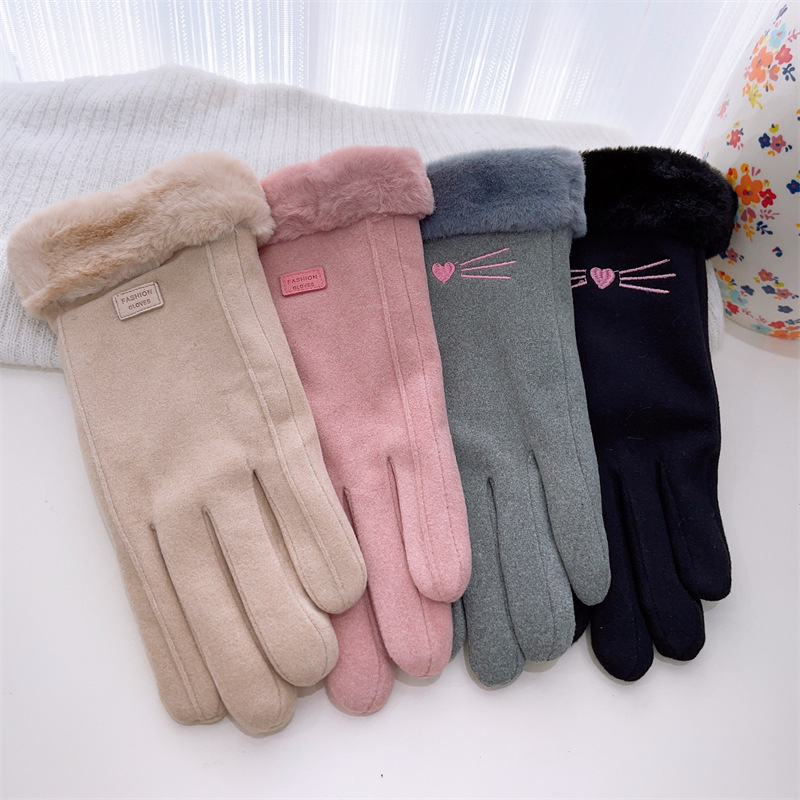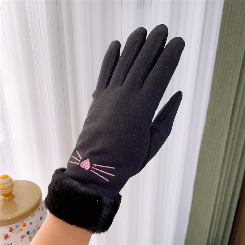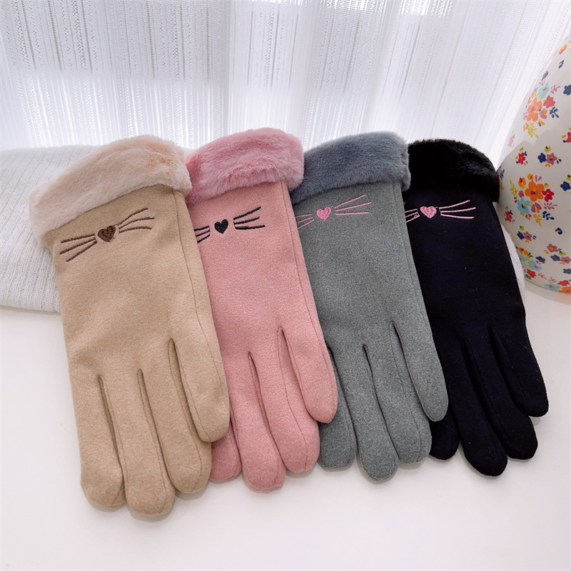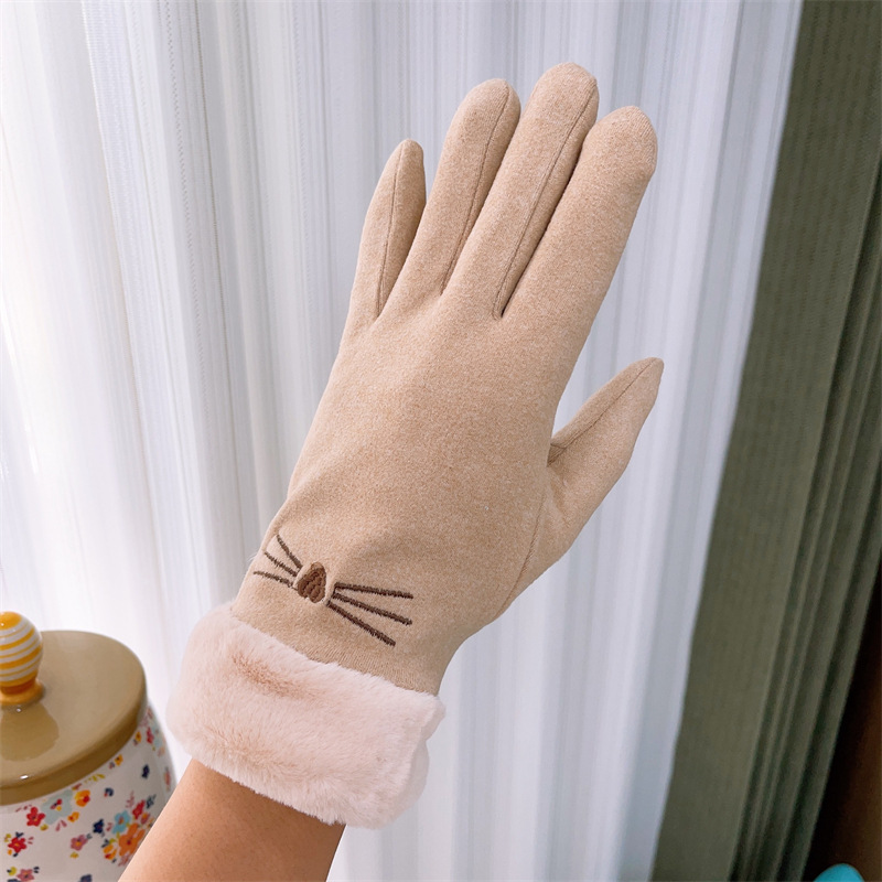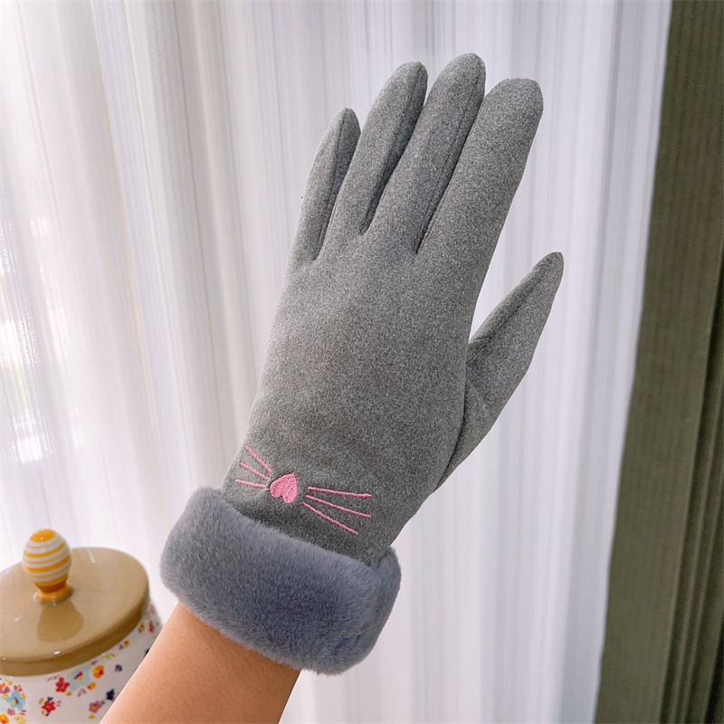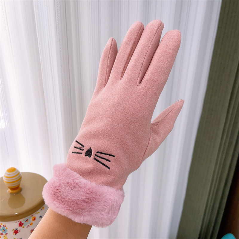 여성용 겨울 따뜻한 장갑, 사이클링 터치 스크린 장갑, 벨벳 학생 장갑, 여성용 가을 겨울 귀여운 고양이 벨벳 장갑