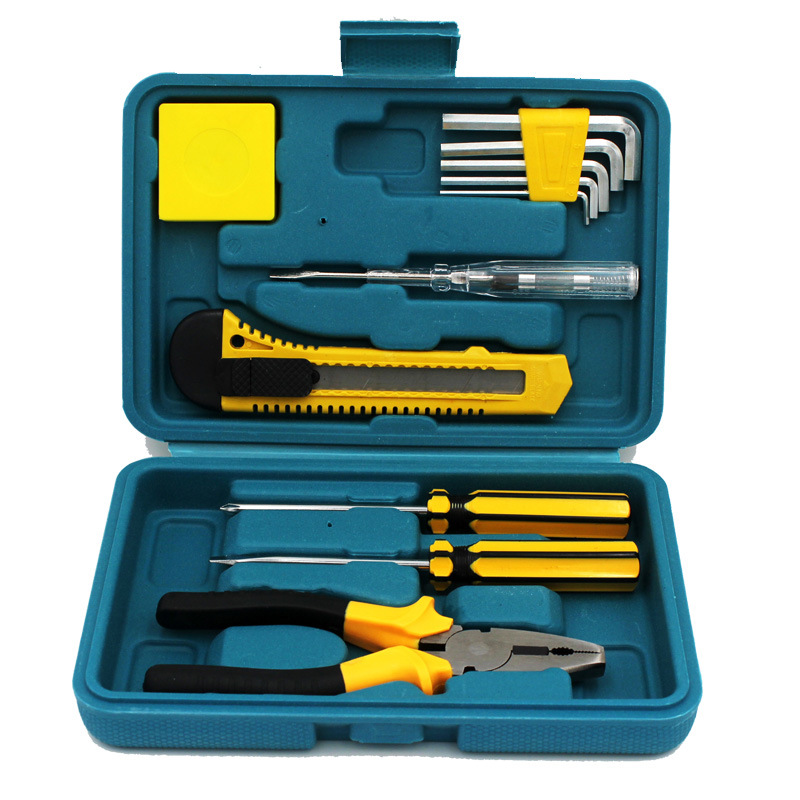 升级款9件套家用五金工具套装 礼品工具盒带锤子手动工具8009A-1
