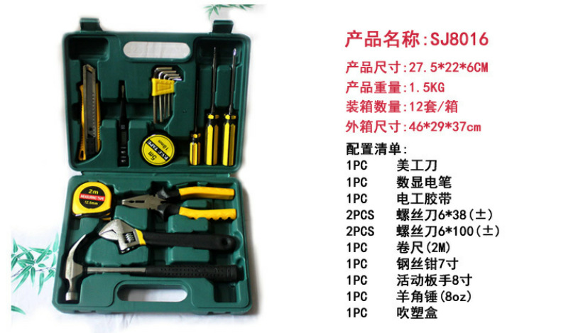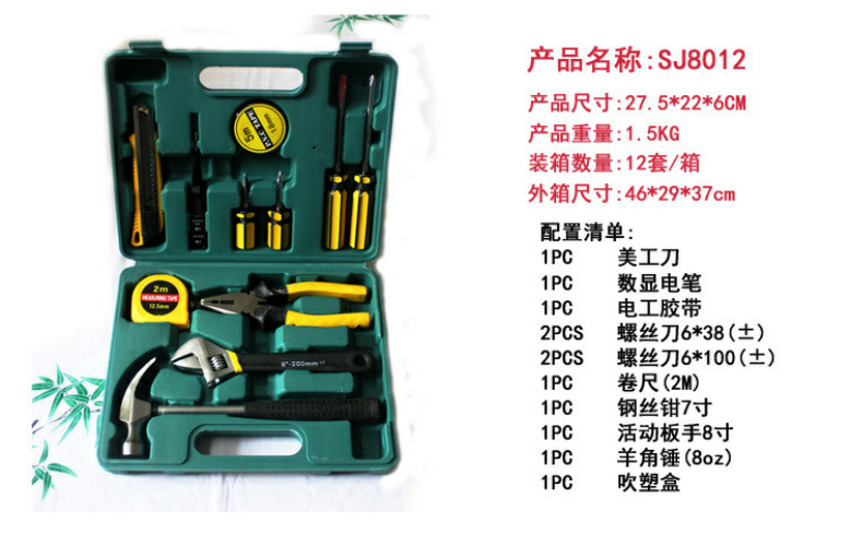 小12件套组合工具箱 广告礼品便携工具套装车家用五金工具 8012E