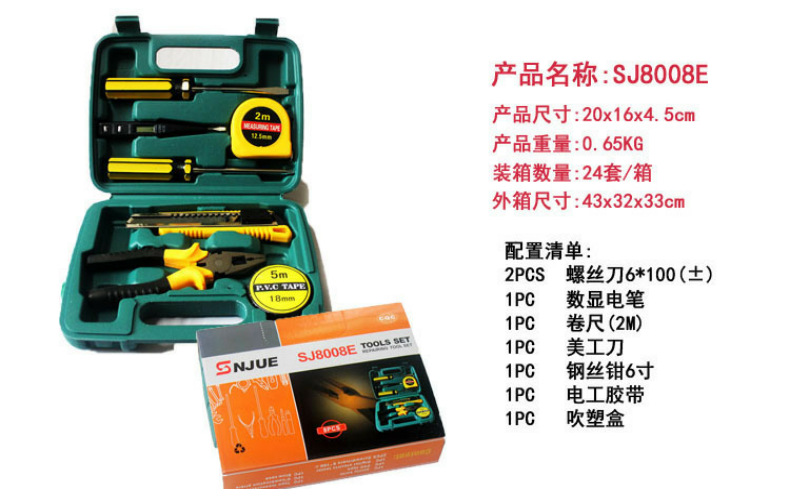 专款8件套广告礼品五金工具箱8件套带数显电笔车用组合工具8008E