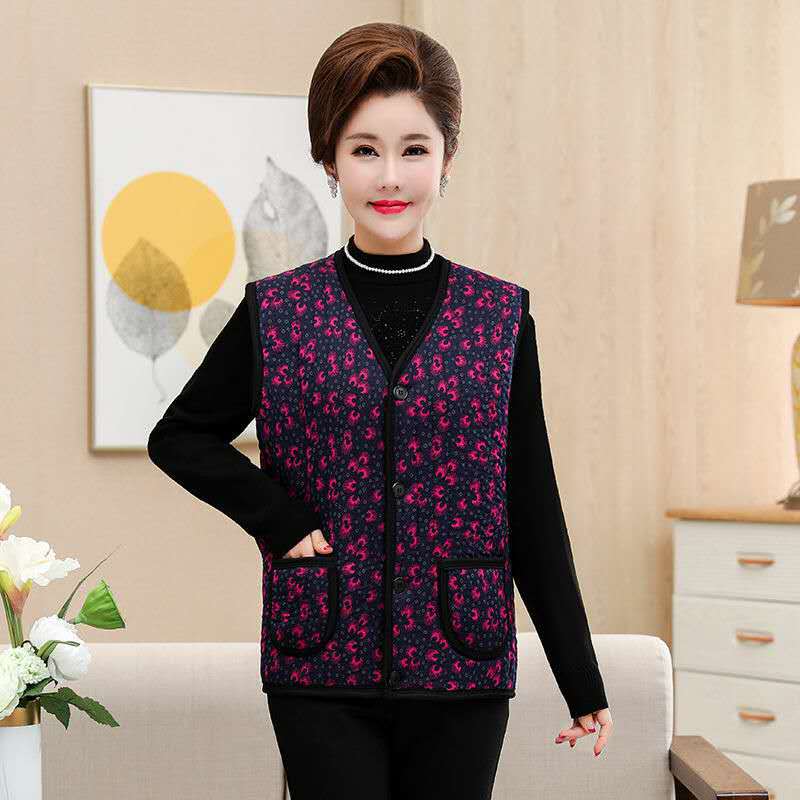 중년 및 노인 양복 조끼 여성 가을 및 겨울 기모 면화 양복 조끼 할머니 카디건 플러스 사이즈 양복 조끼 어머니 노인 도매스토어 가기