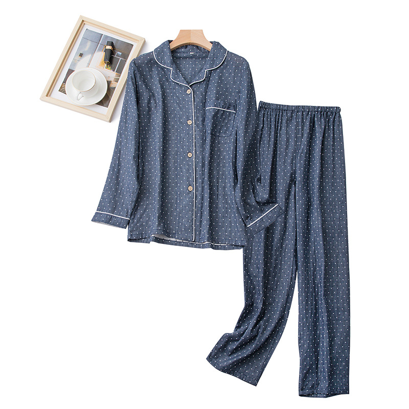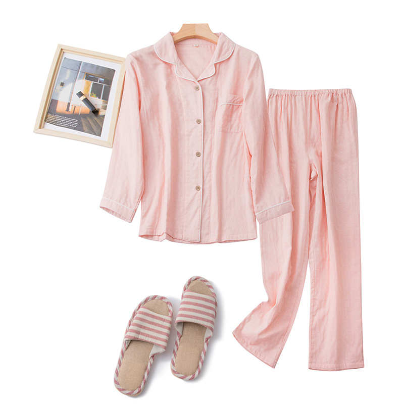 봄과 가을 코튼 더블 레이어 원사 부모-자식 커플 남자와 여자의 긴 짧은 소매 바지 잠옷 가정 의류 세트 도매스토어 가기