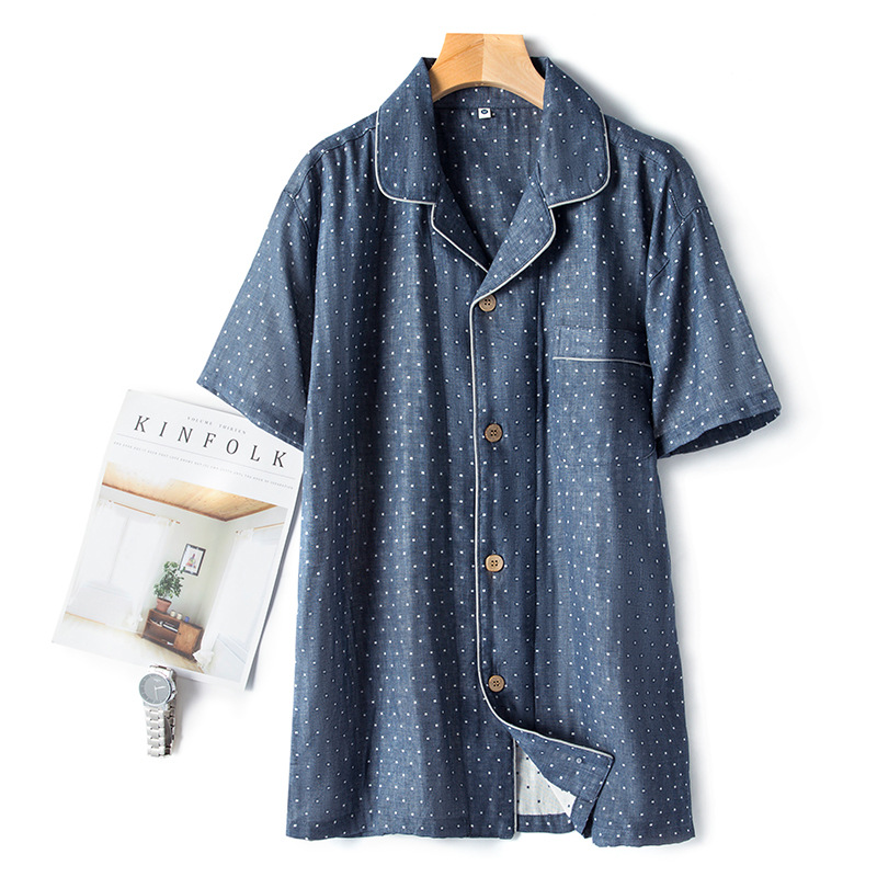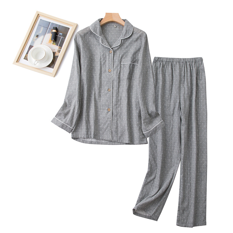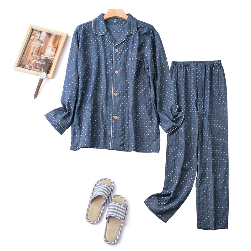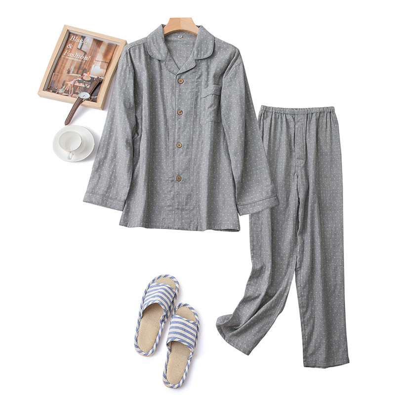 봄과 가을 코튼 더블 레이어 원사 부모-자식 커플 남자와 여자의 긴 짧은 소매 바지 잠옷 가정 의류 세트 도매