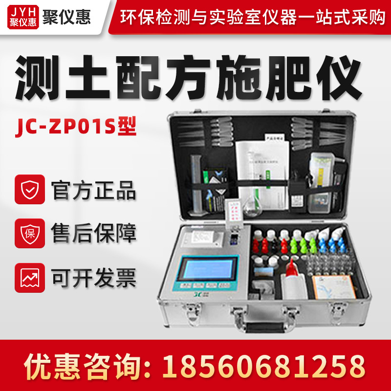 JC-ZP01S采用微电脑控制,程序化设计,5.1寸大屏幕中文汉字背光显示,交直流两用,内置锂电池,可野外流动测试。无需空白和标准校准,一键式操作,直接读取数据,配套成套附件及成品药剂。内置作物专家施肥系统,依据测试结果直接得出科学施肥配方。触摸式按键,内置高档热敏打印机,可打印测试结果和施肥建议,具备历史查询功能。