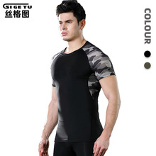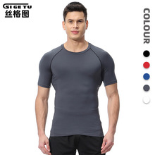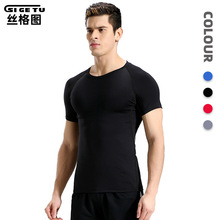 시게투 크로스보더 피트니스웨어 남성용 봄여름 신축성 속건 타이트핏 농구 트레이닝 러닝 반팔 스포츠 티셔츠