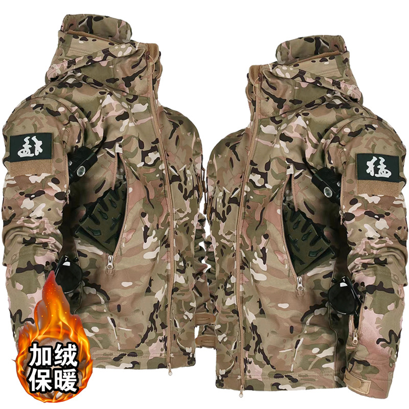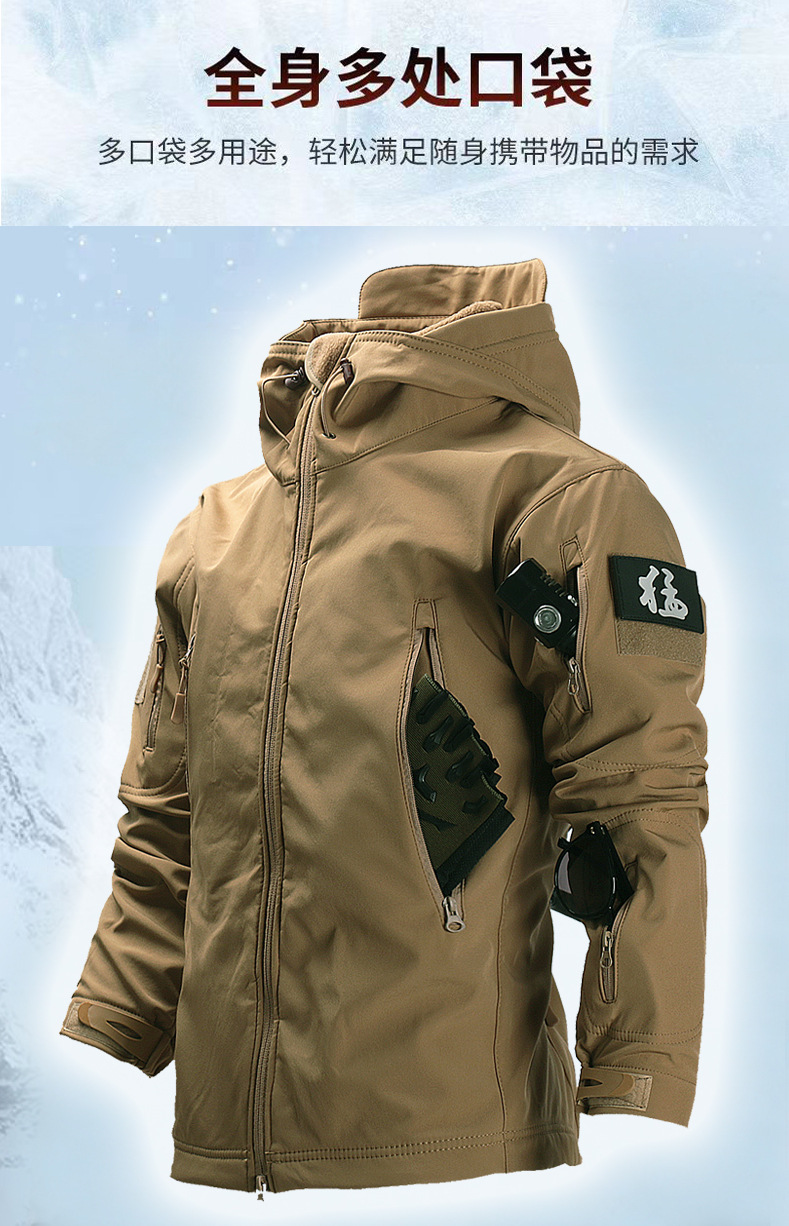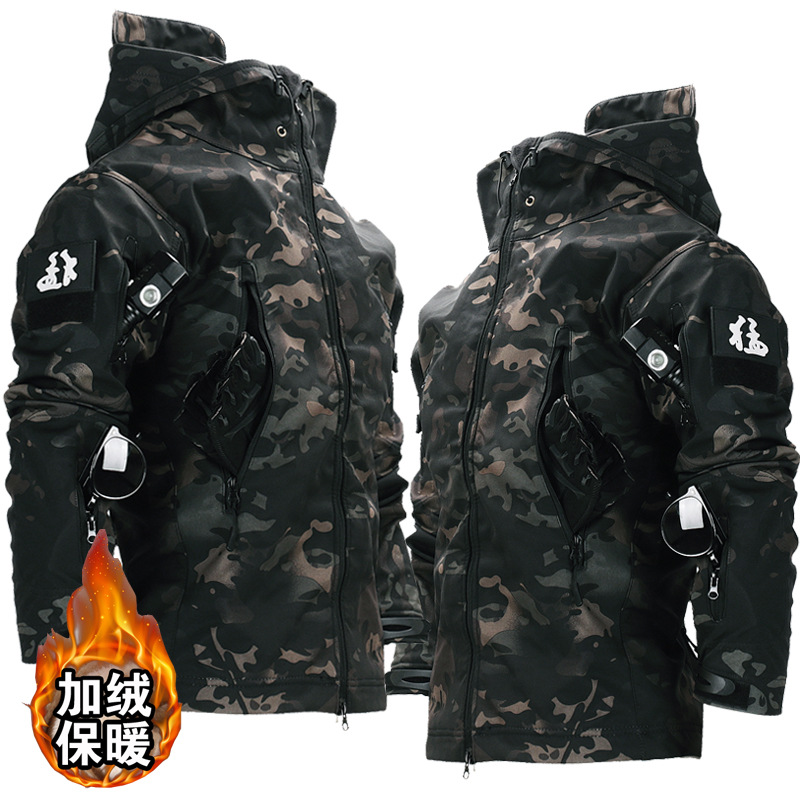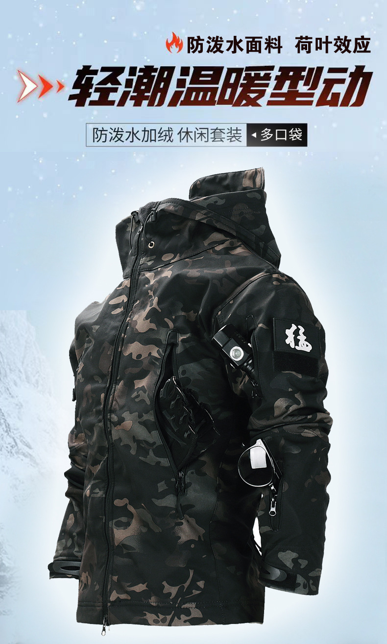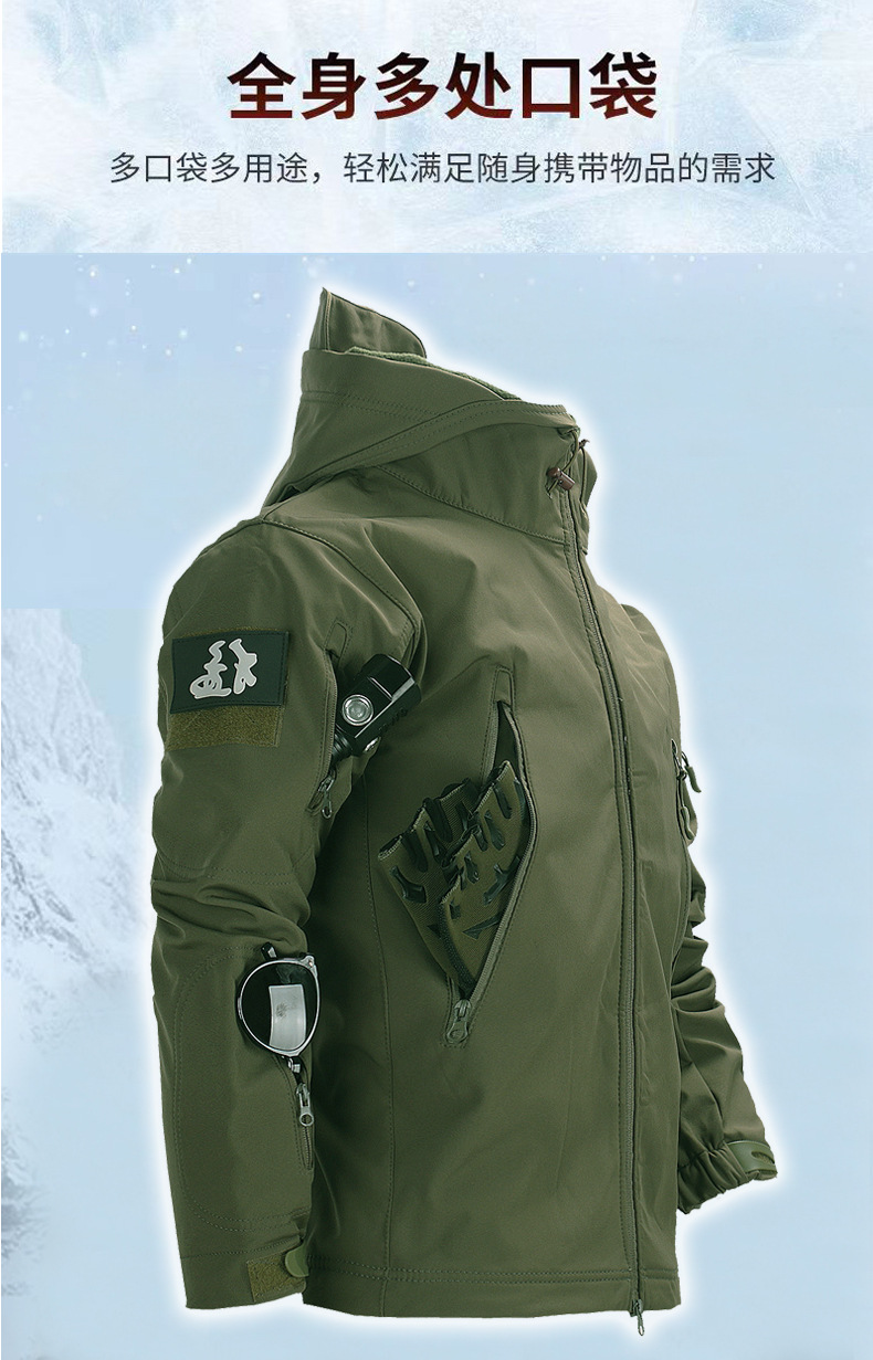 국경 간 직접 판매 상어 피부 소프트 쉘 재킷 남성용 두꺼운 방풍 방수 등산 세트 남성용 따뜻한 양털 재킷