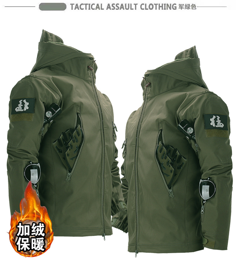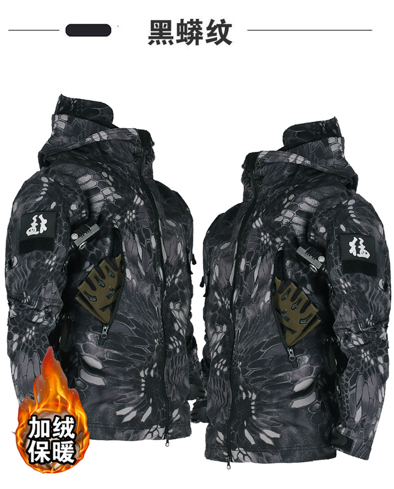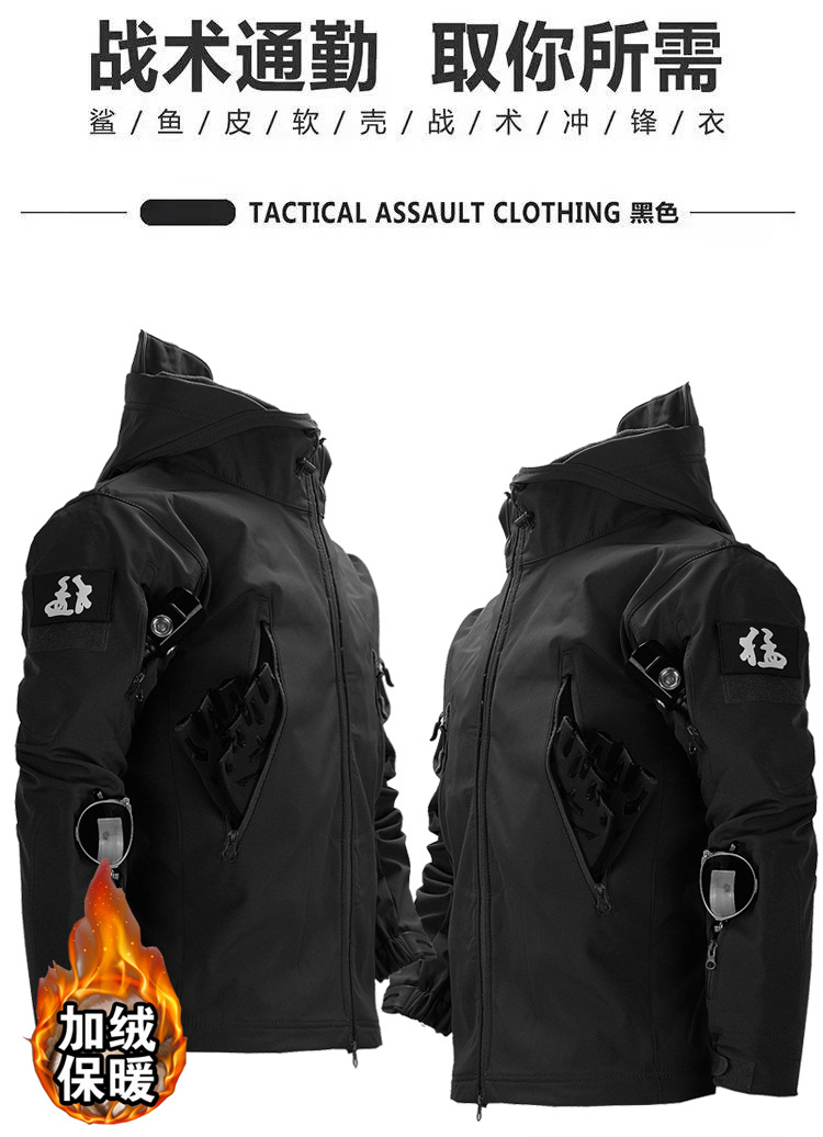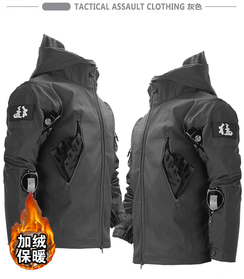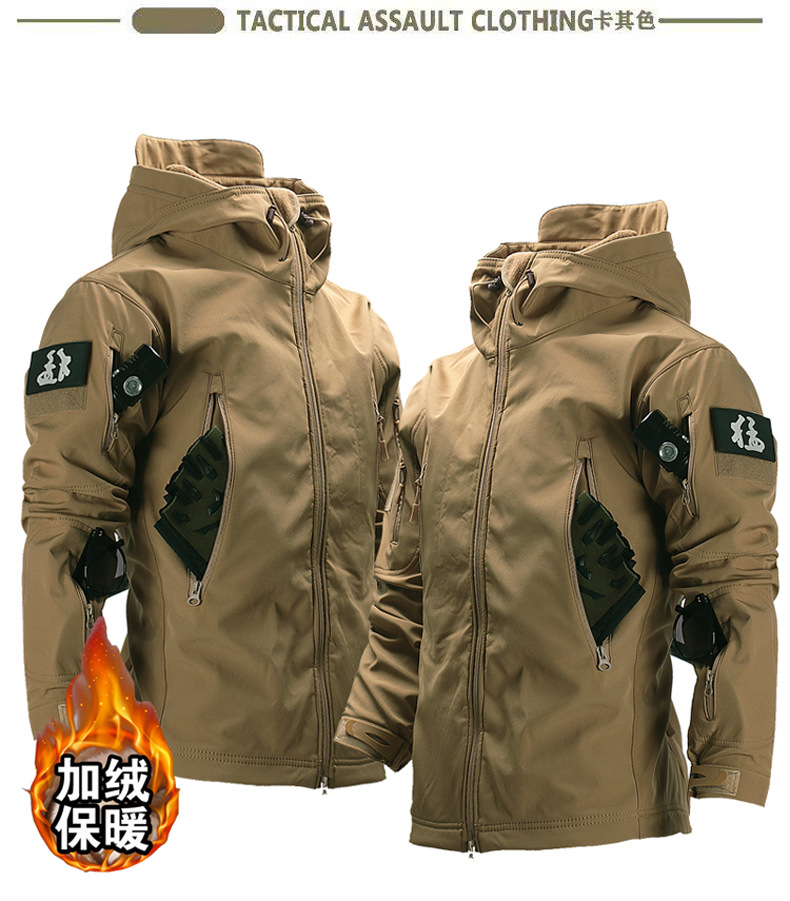 국경 간 직접 판매 상어 피부 소프트 쉘 재킷 남성용 두꺼운 방풍 방수 등산 세트 남성용 따뜻한 양털 재킷