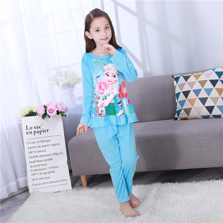 2024 아동용 긴팔 잠옷 여아용 엘사 겨울왕국 밀크 실크 양면 두꺼운 수출용 아동 잠옷