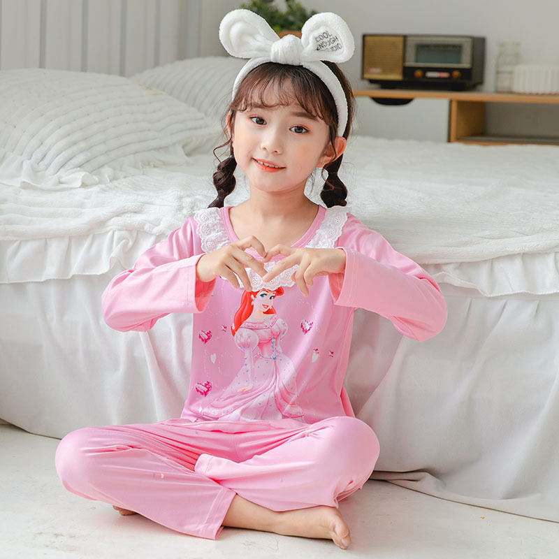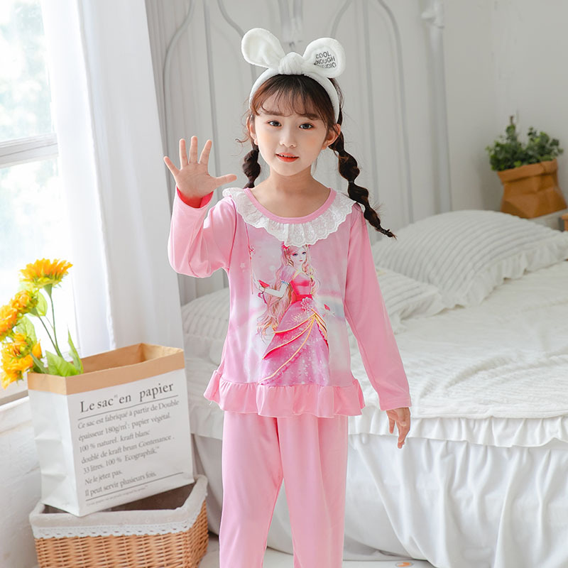 2024 년 어린이 긴팔 잠옷 소녀 아이샤공 냉동 메인 우유 실크 양면 두꺼운 대외 무역 잠옷