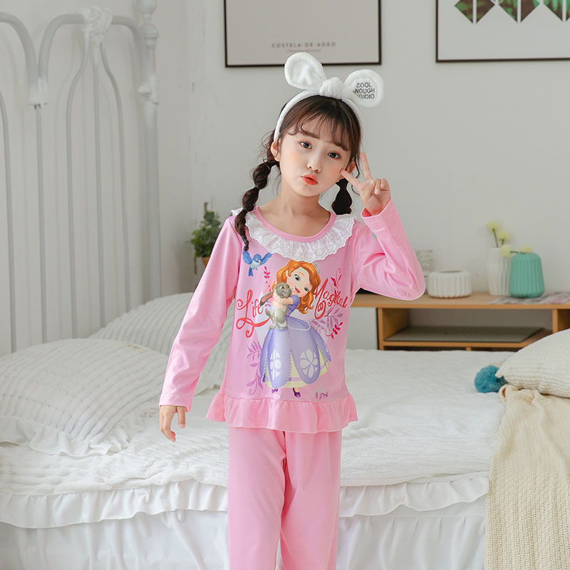 2024 년 어린이 긴팔 잠옷 소녀 아이샤공 냉동 메인 우유 실크 양면 두꺼운 대외 무역 잠옷스토어 가기
