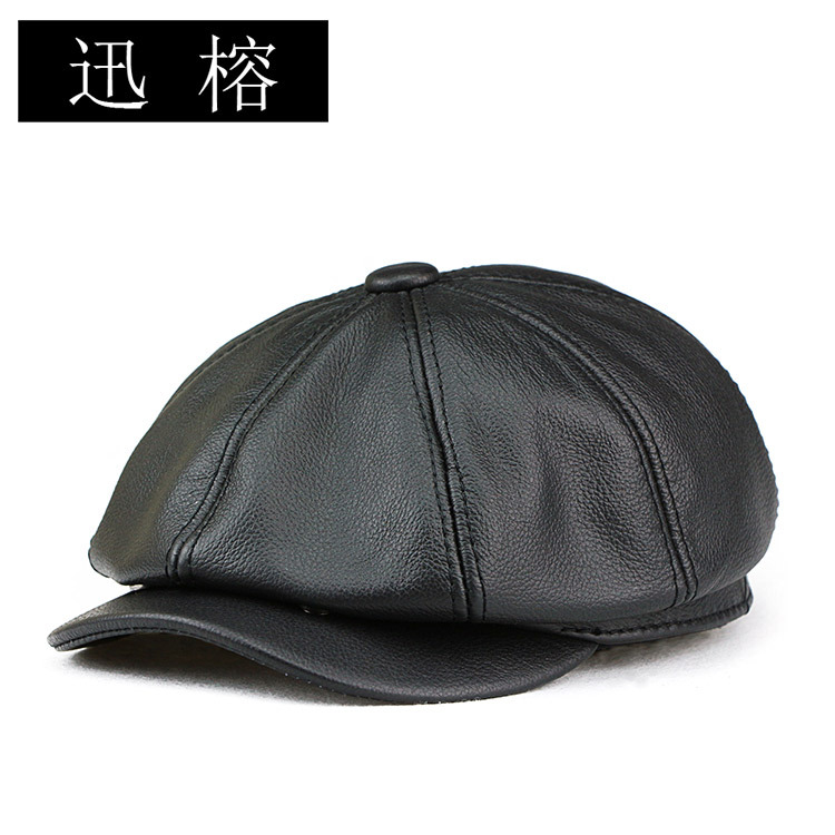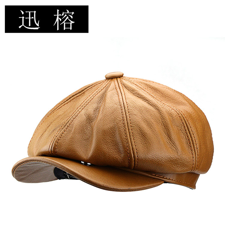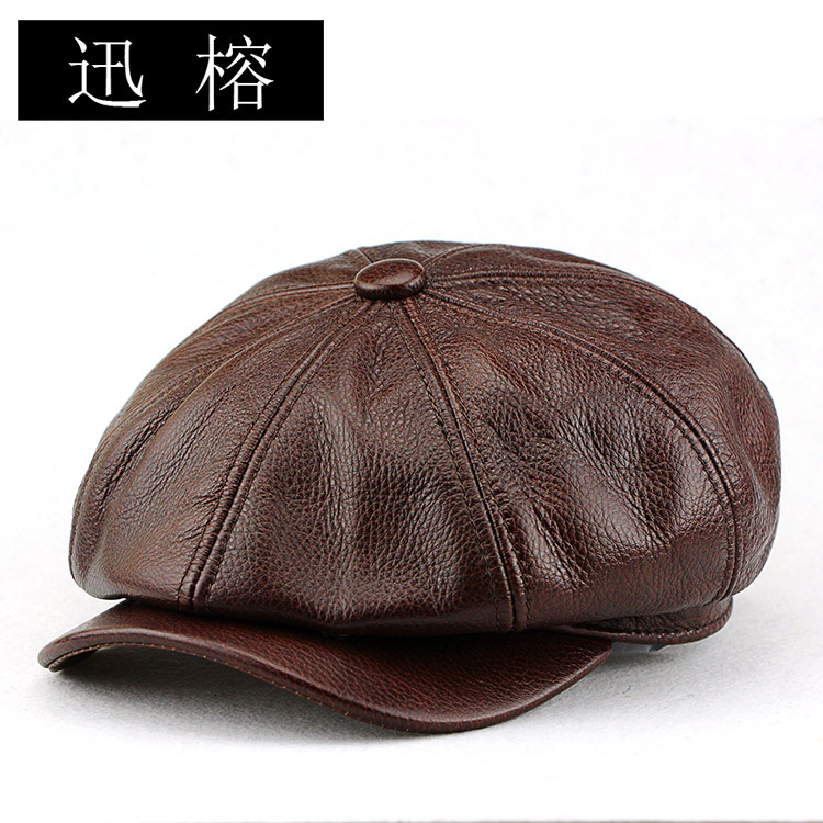 가을 새로운 정품 가죽 모자 남자의 베레모 신문 소년 모자 앞으로 모자 영국 소가죽 팔각 모자 여자의 모자 유행