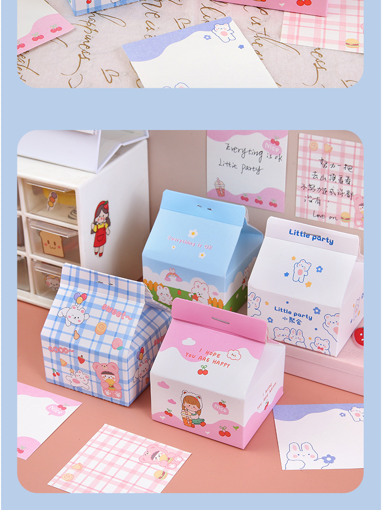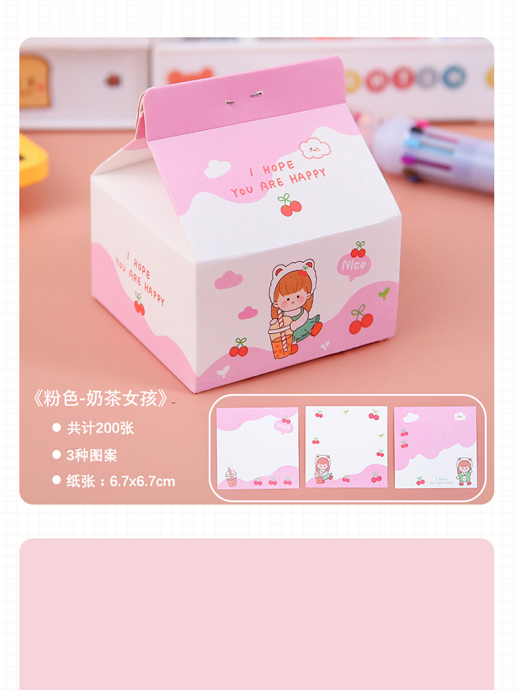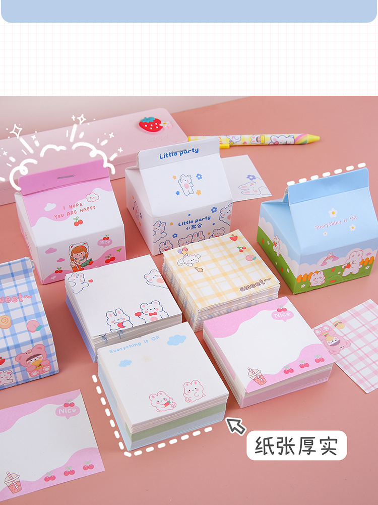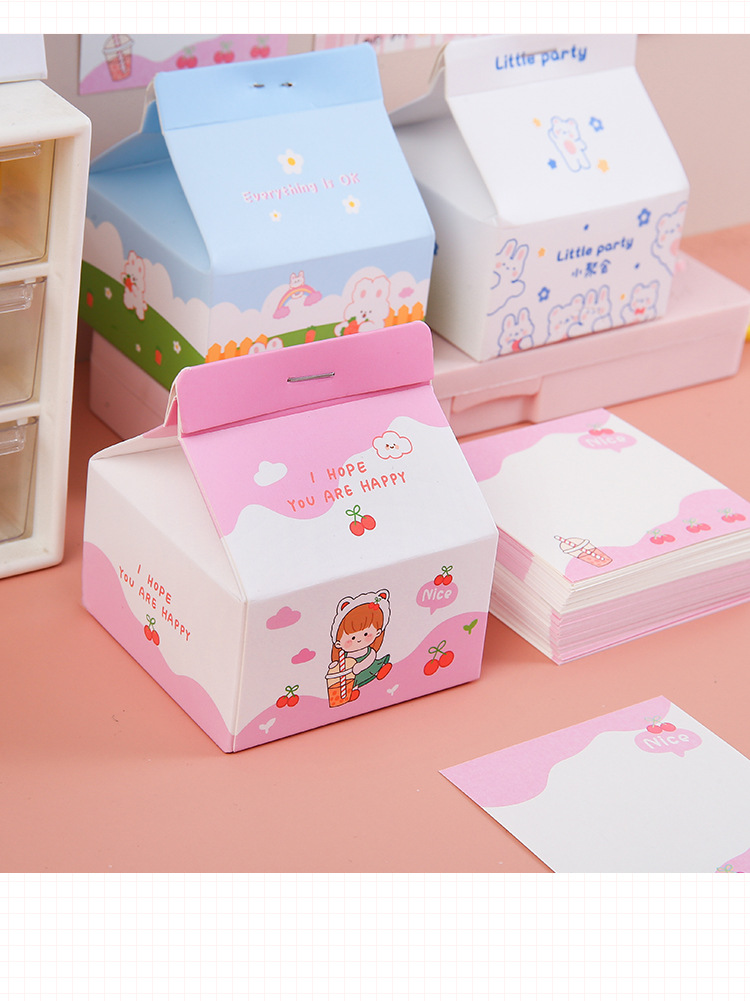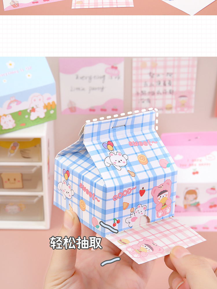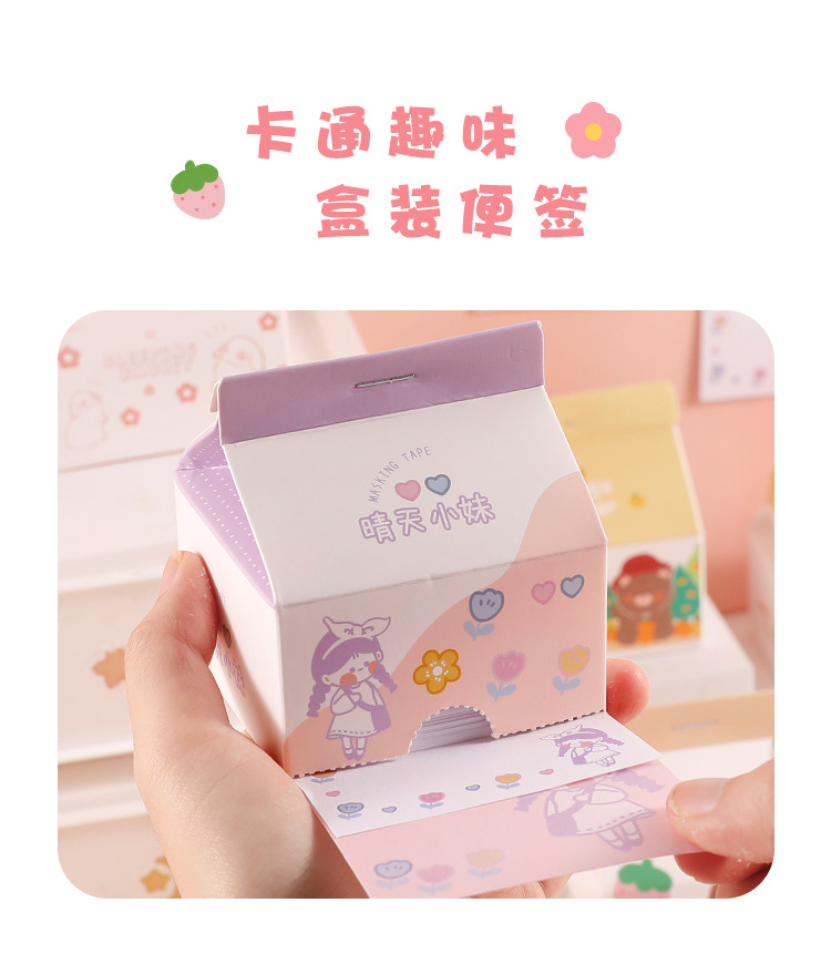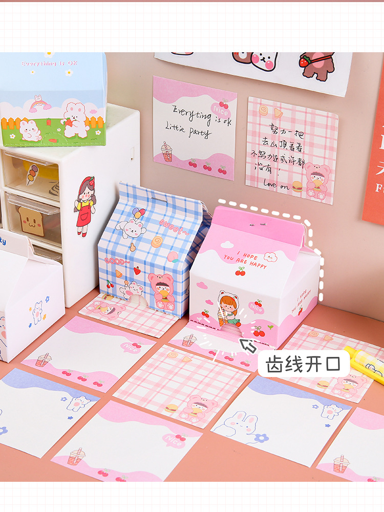 귀여운 소형 인스타 감성 만화 스타일 메모지 소녀 감성 메모장 학생용 창의적인 우유팩 메모지 도매스토어 가기