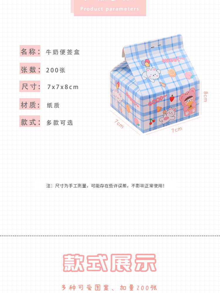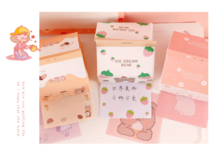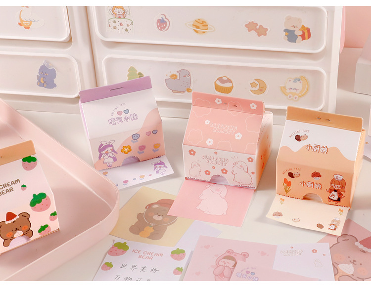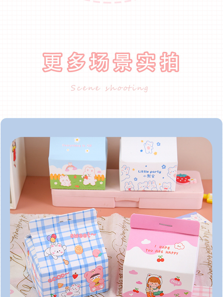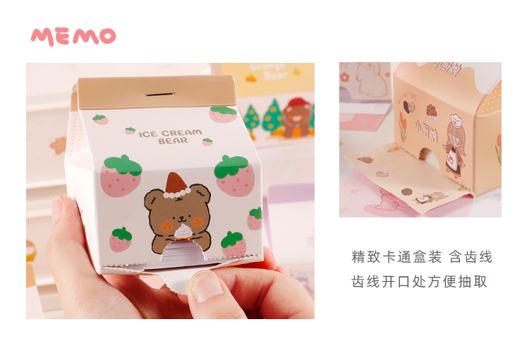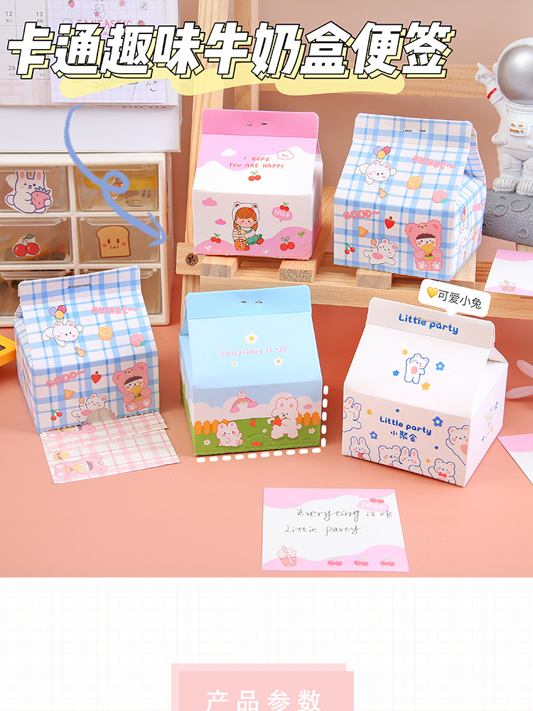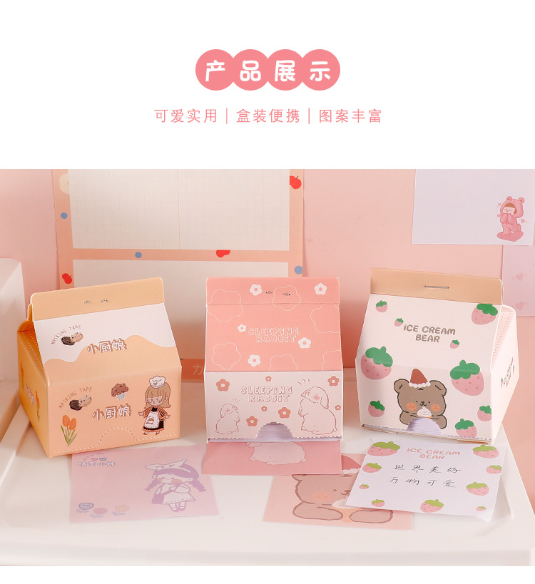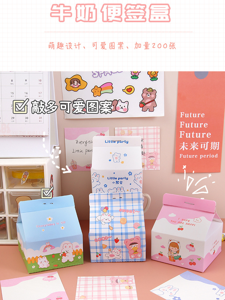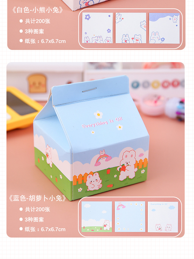 귀여운 소형 인스타 감성 만화 스타일 메모지 소녀 감성 메모장 학생용 창의적인 우유팩 메모지 도매스토어 가기