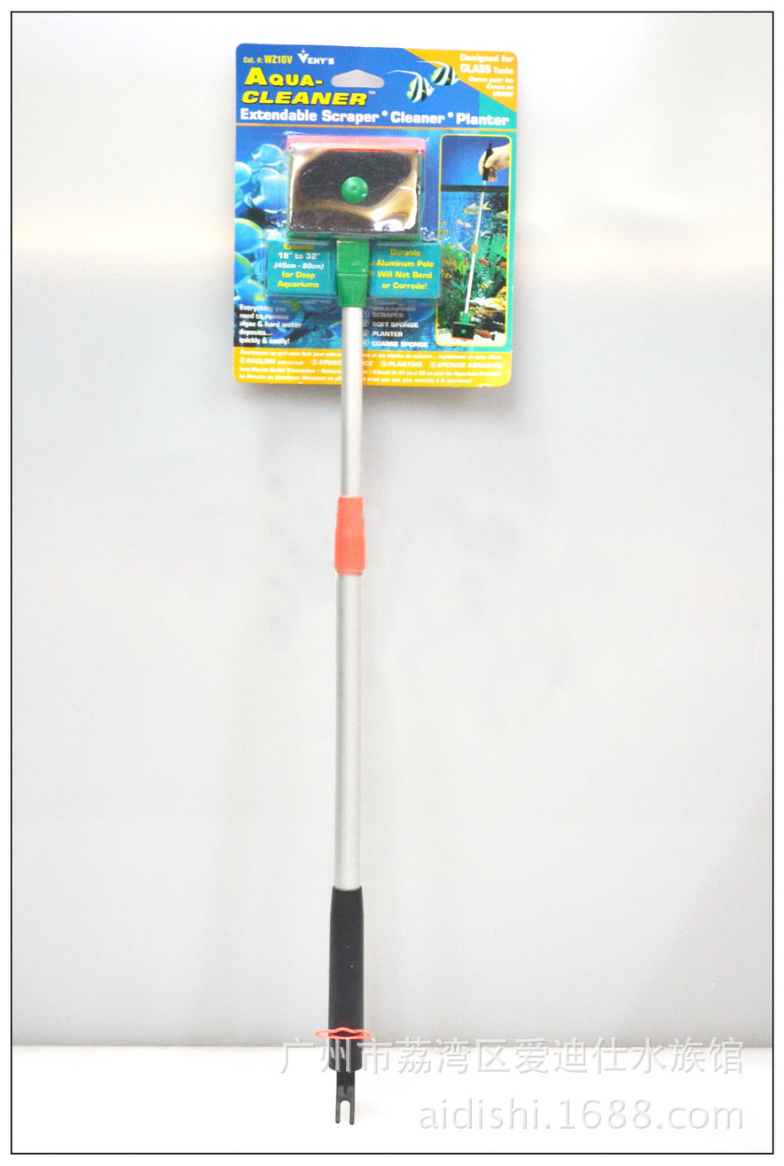 纯铝超轻防滑手柄,可调节角度多功能刷头,刮刀,能适合各种形状的鱼缸清洁。玻璃、亚克力鱼缸均适用