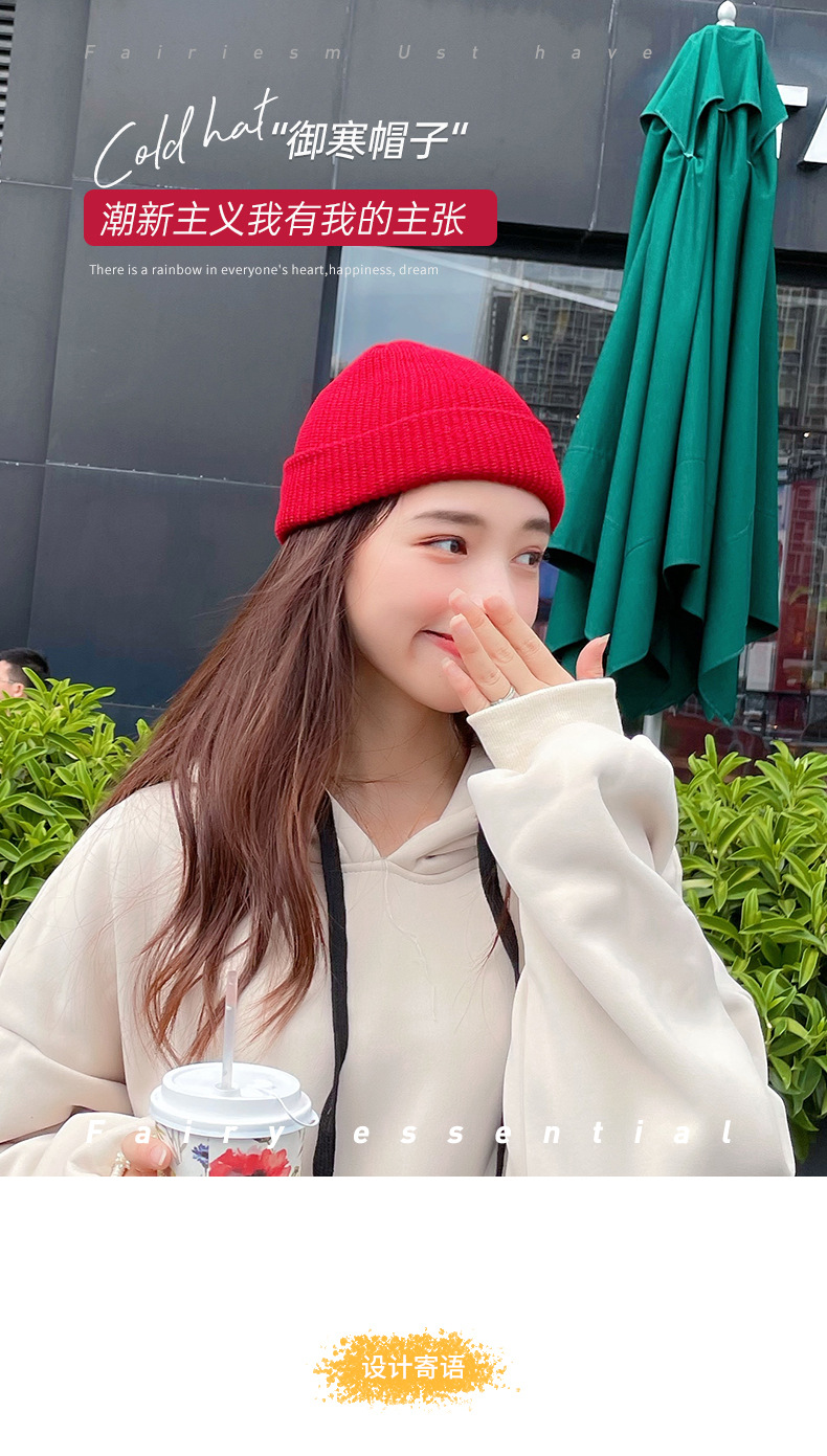 니트 모자 여성용 겨울 보온 모자 두꺼운 단색 다용도 커플용 풀오버 모자 캐주얼 커플 스타일