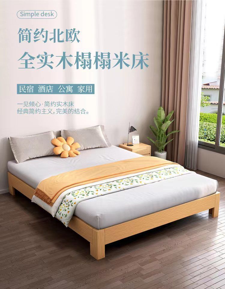 다다미 일본식 심플 헤드리스 단단한 나무 침대 도매 소형 아파트 홈 싱글 침대 홈스테이 더블 침대 프레임스토어 가기