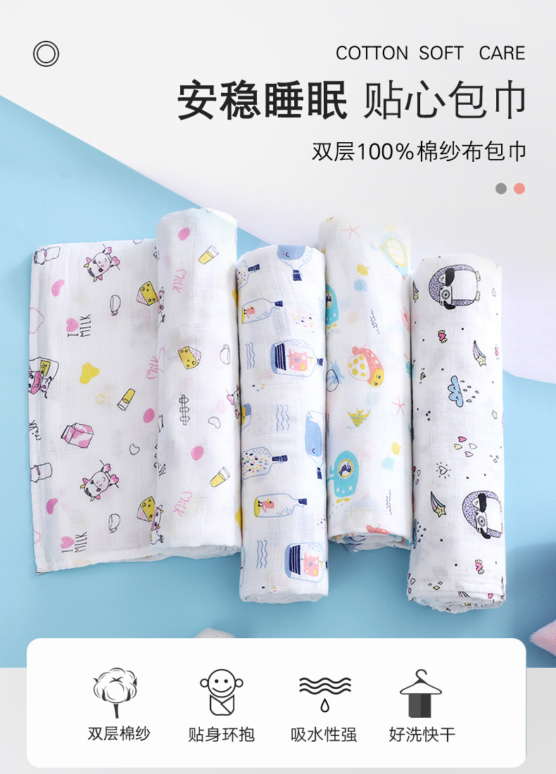 100 면 식물 시리즈 거즈 포장 타월 신생아 거즈 이불 아기 목욕 타월 아기 포대기 타월 랩스토어 가기