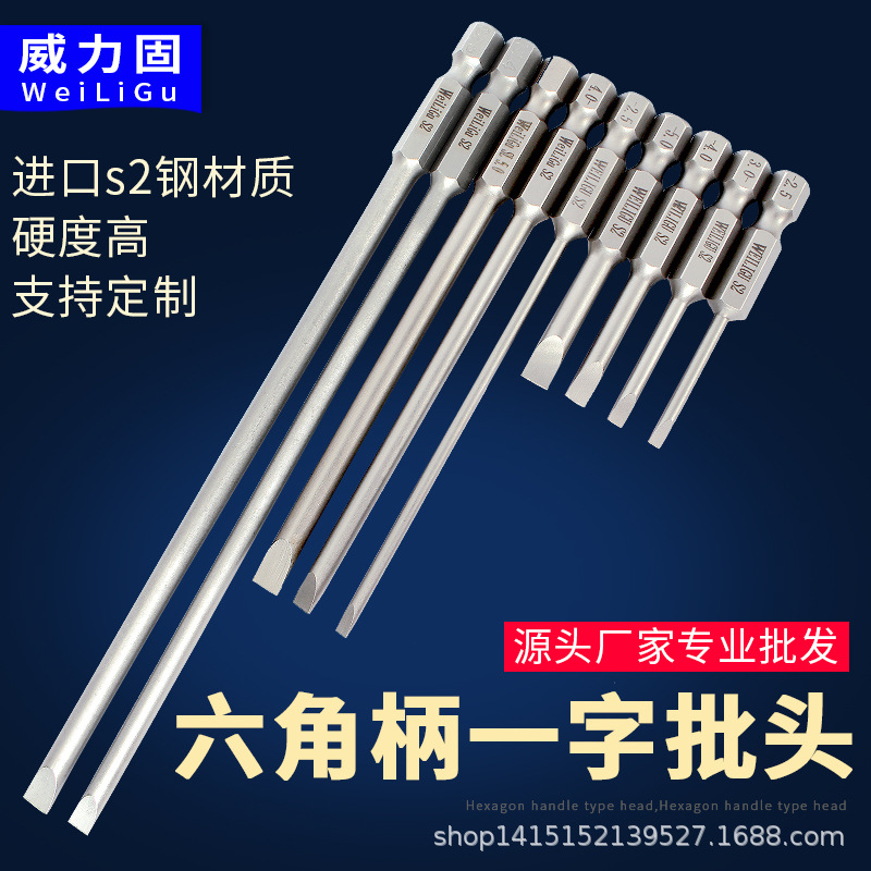 Weiliu 공압 공기 배치 6.35mm 육각형 핸들 헤드 배치 헤드 전기 플랫 스크루 드라이버 헤드스토어 가기