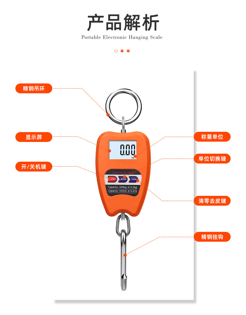 국경 간 무역 전자 크레인 저울 200kg 소형 계량 저울 전자 저울 휴대용 저울 검정색 산업용 크레인 저울