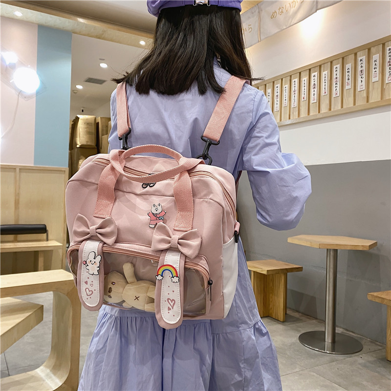 • 日系jk书包女新款可爱蝴蝶结手提背包学生补习包袋双肩包透明娃包23折扣价:23