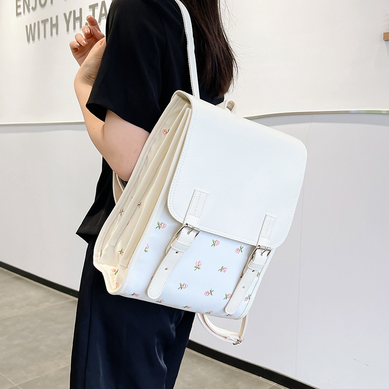 • 跨境双肩包女新款大容量pu尼龙拼接背包日系清新学院风小碎花书包31折扣价:31
