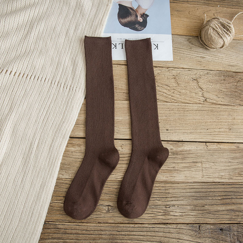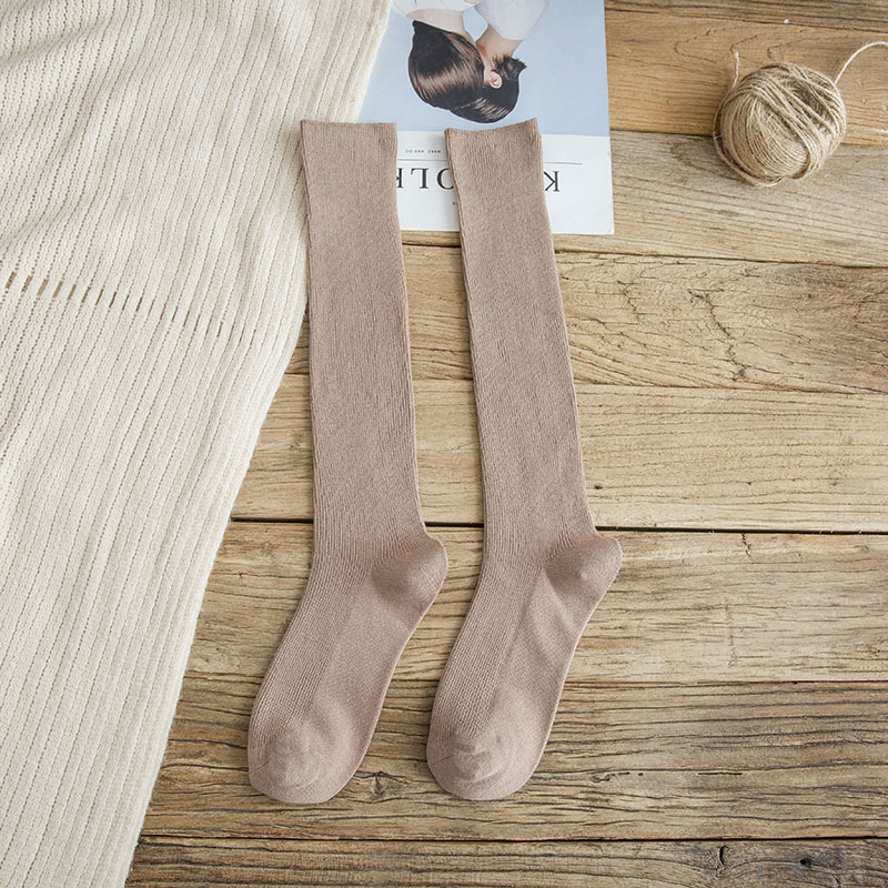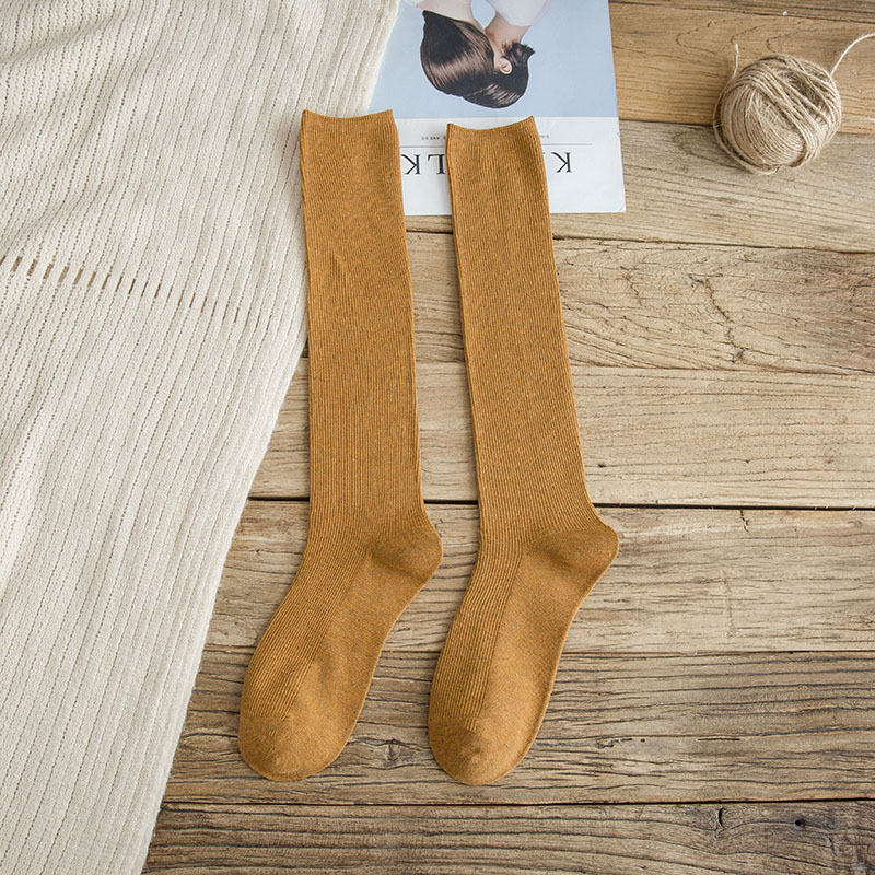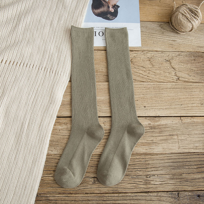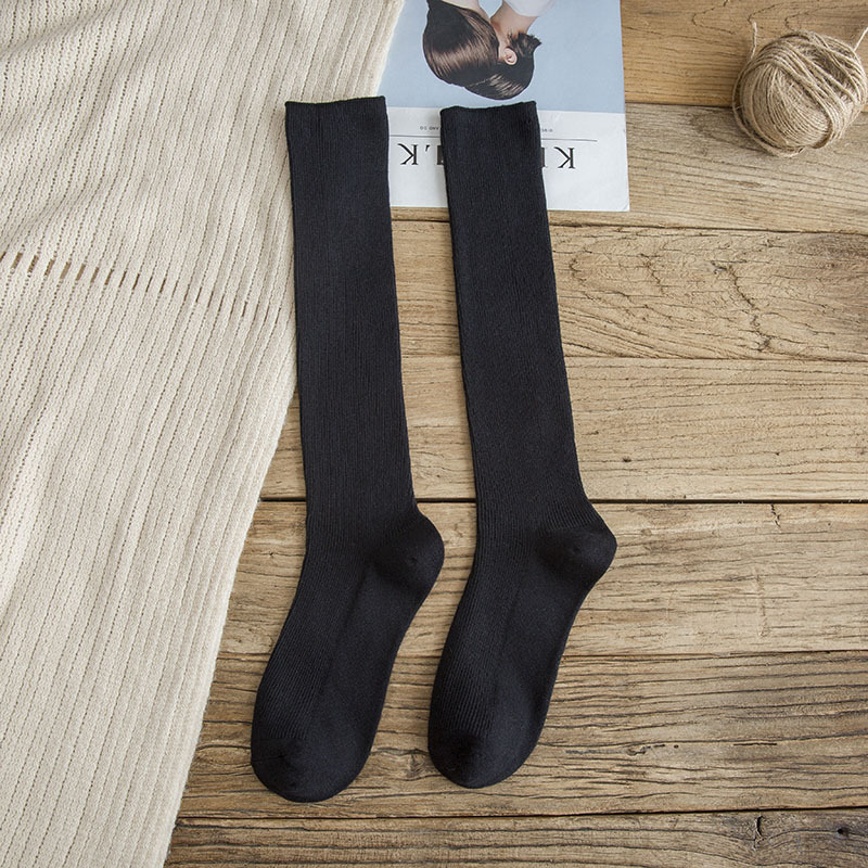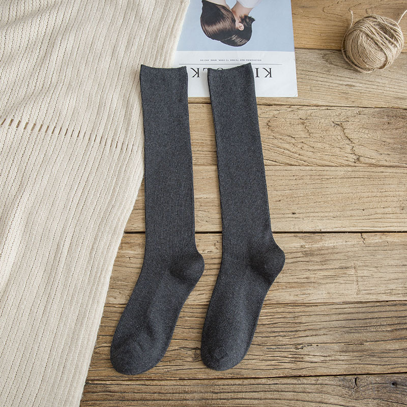 일본 스타일 여성용 가을 겨울 하이탑 압박 양말 이중 바늘 무지 레깅스 양말 무릎까지 오는 양말 통기성 면 양말 다리 슬리밍 양말스토어 가기