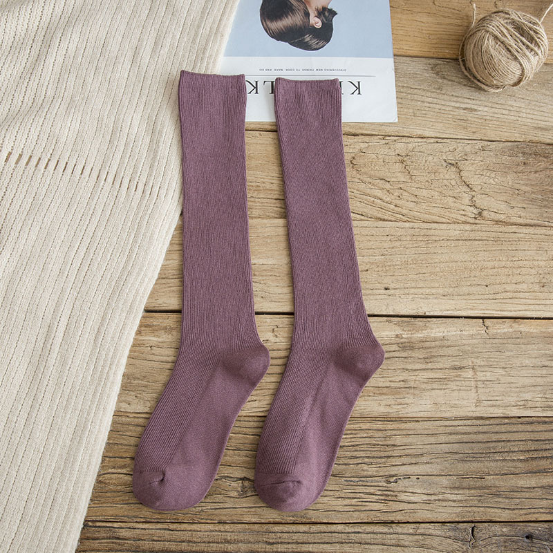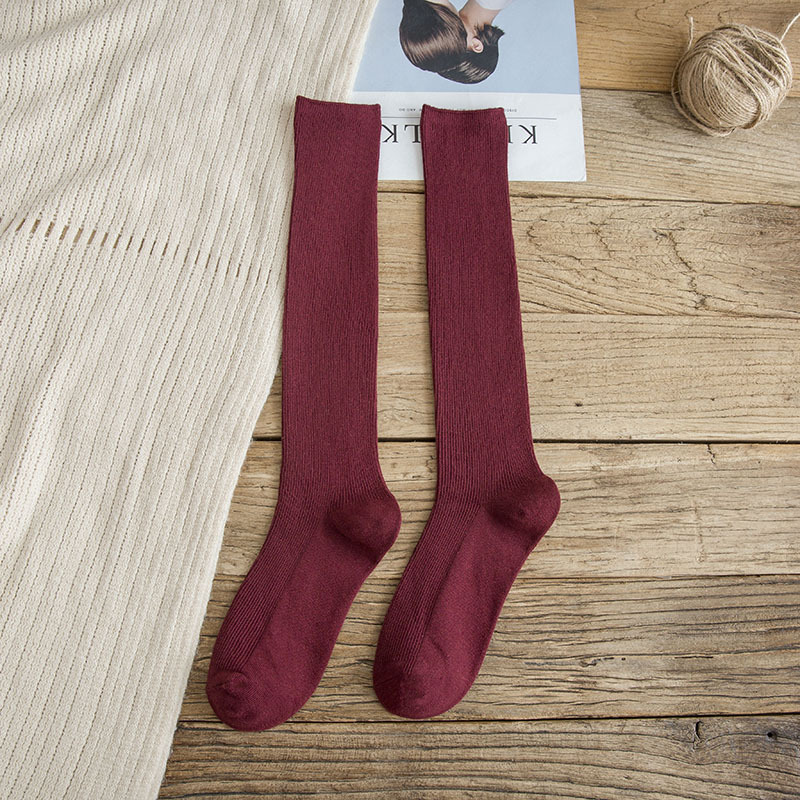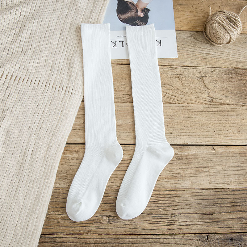 일본 스타일 여성용 가을 겨울 하이탑 압박 양말 이중 바늘 무지 레깅스 양말 무릎까지 오는 양말 통기성 면 양말 다리 슬리밍 양말