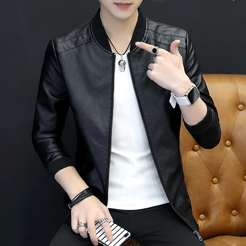 크로스 보더 솔리드 컬러 스탠드 칼라 가죽 자켓 남성 자켓 봄과 가을 캐주얼 플러스 사이즈 청소년 Pu 가죽 자켓 남성 최고 트렌디스토어 가기
