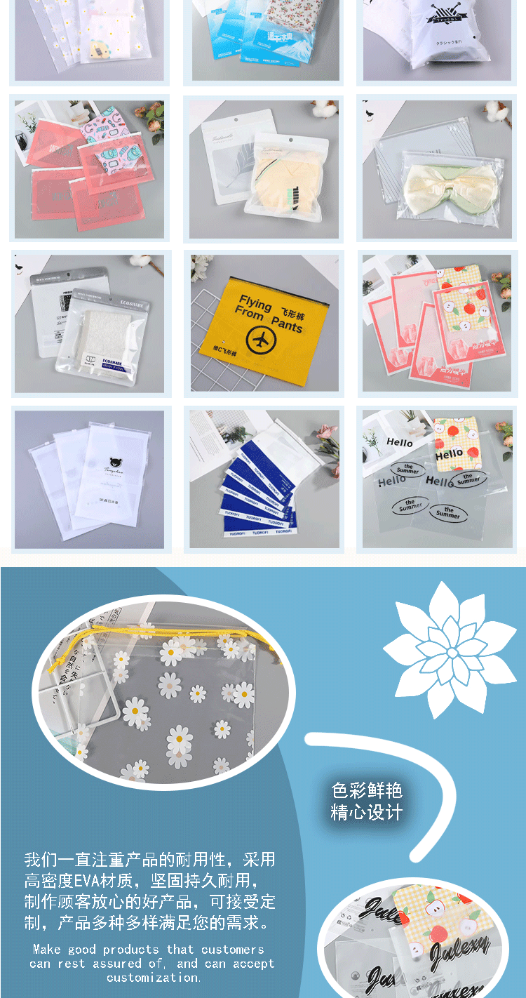 레이스 여신 의류 지퍼 가방 지퍼 복합 가방 투명 서리 지퍼 가방 재고 의류 포장 가방
