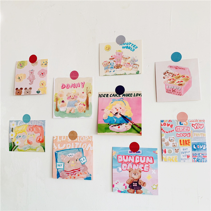 한국 인터넷 연예인 엽서 INS 스타일 귀여운 유화 곰 손 계정 장식 카드 사진 소품 벽 스티커 인사말 카드스토어 가기