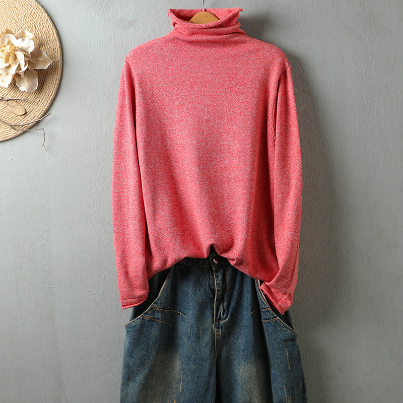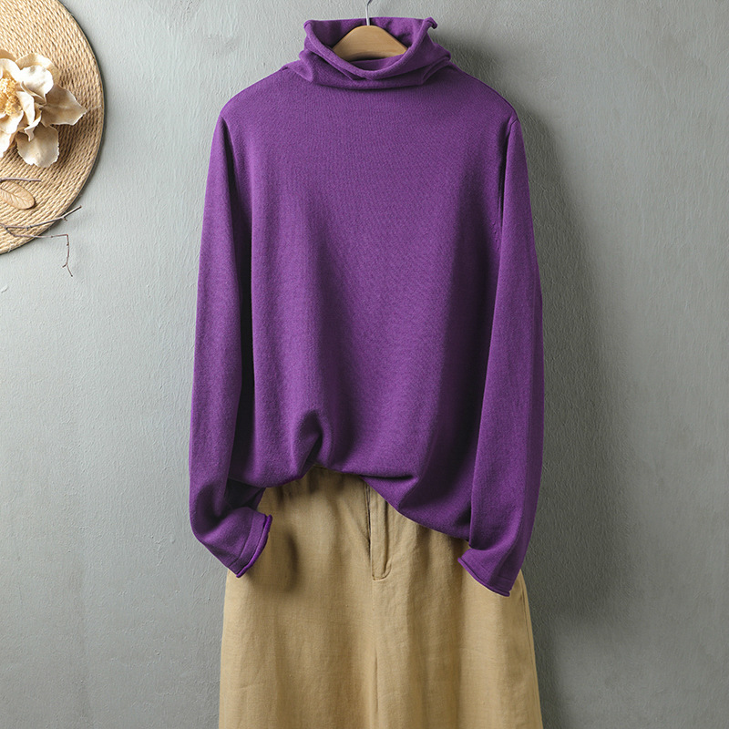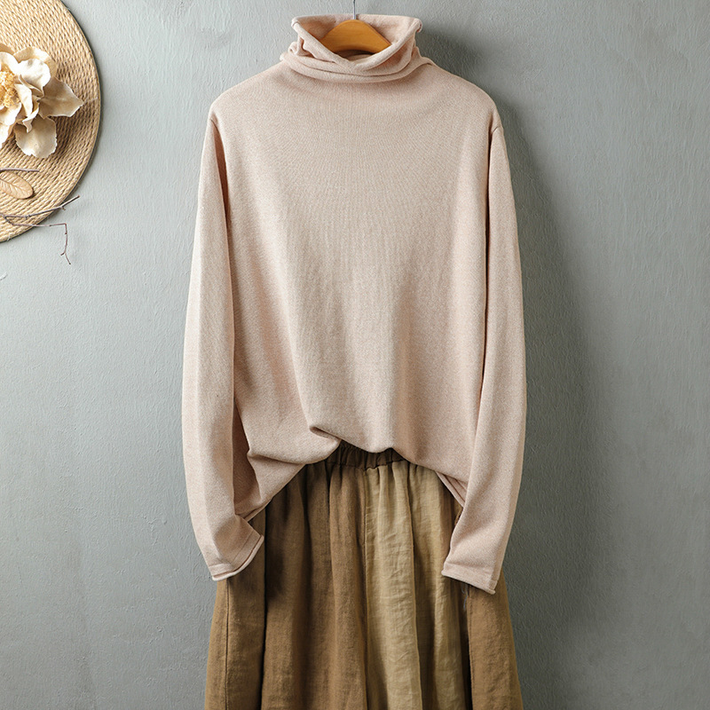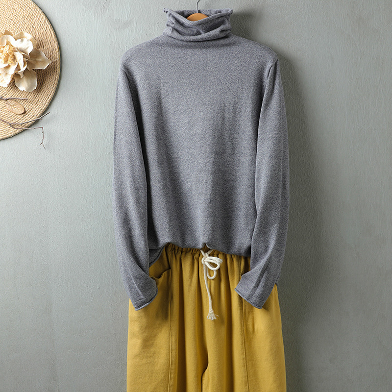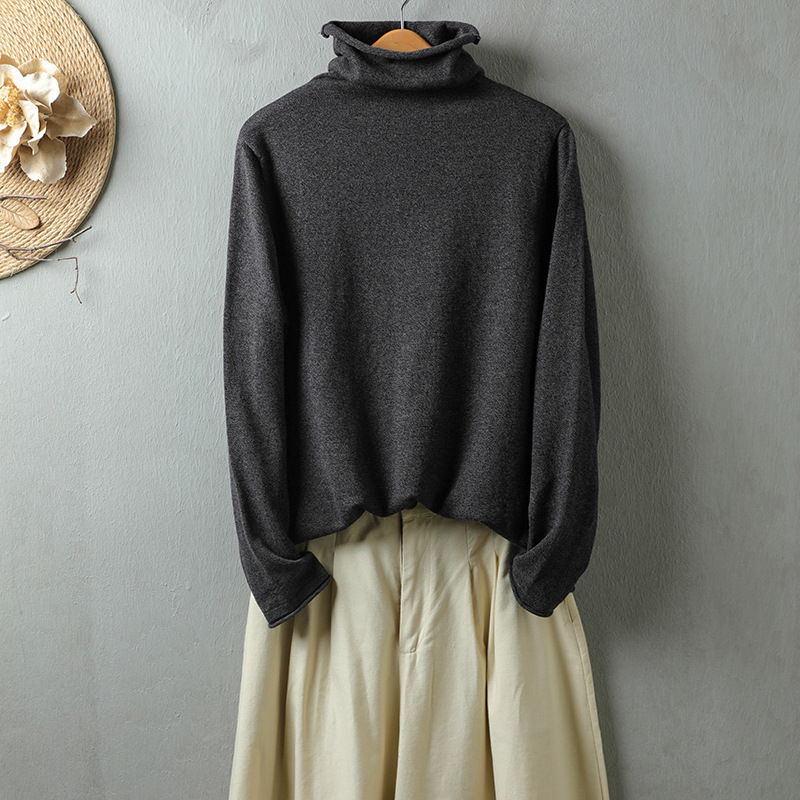 봄과 가을 겨울 새로운 단색 느슨한 색상 면 터틀넥 여성용 니트 셔츠 긴팔 심플 캐주얼 베이스 셔츠