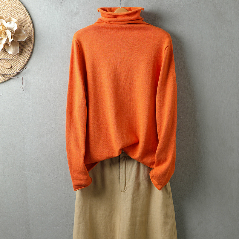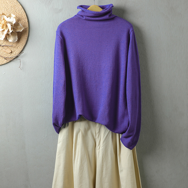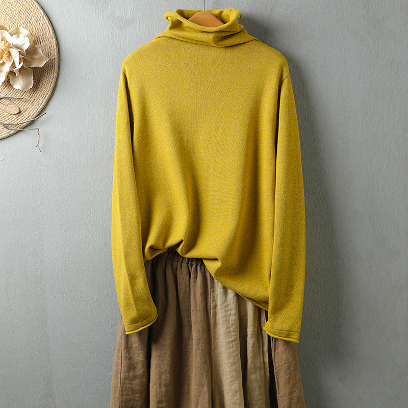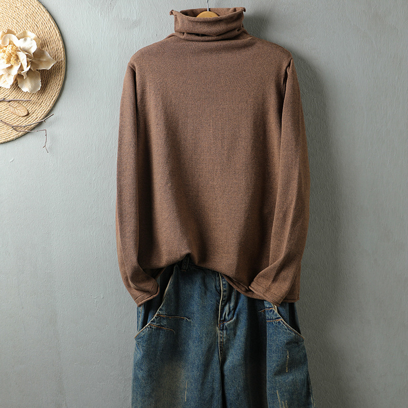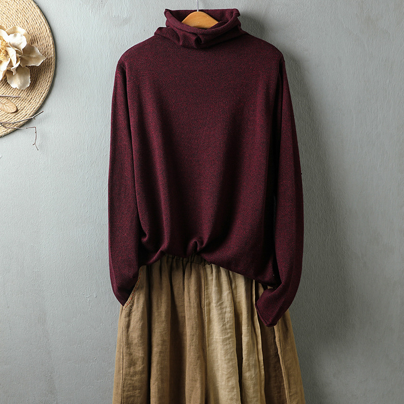 봄과 가을 겨울 새로운 단색 느슨한 색상 면 터틀넥 여성용 니트 셔츠 긴팔 심플 캐주얼 베이스 셔츠