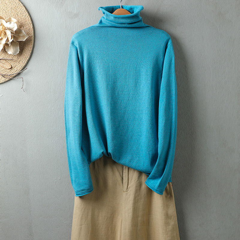 봄과 가을 겨울 새로운 단색 느슨한 색상 면 터틀넥 여성용 니트 셔츠 긴팔 심플 캐주얼 베이스 셔츠스토어 가기
