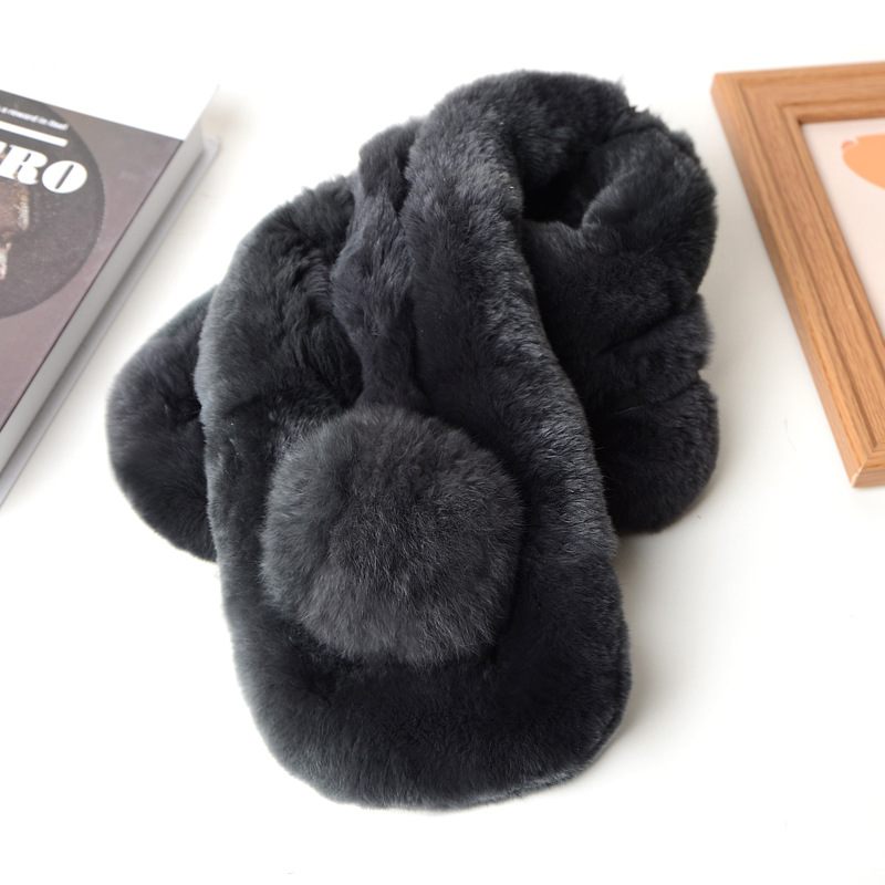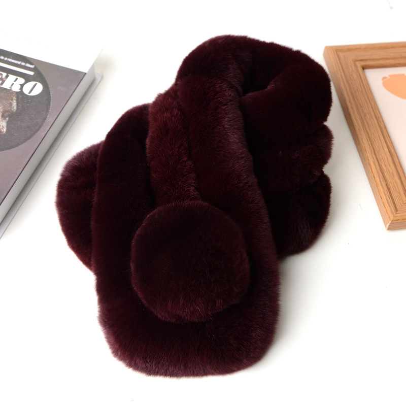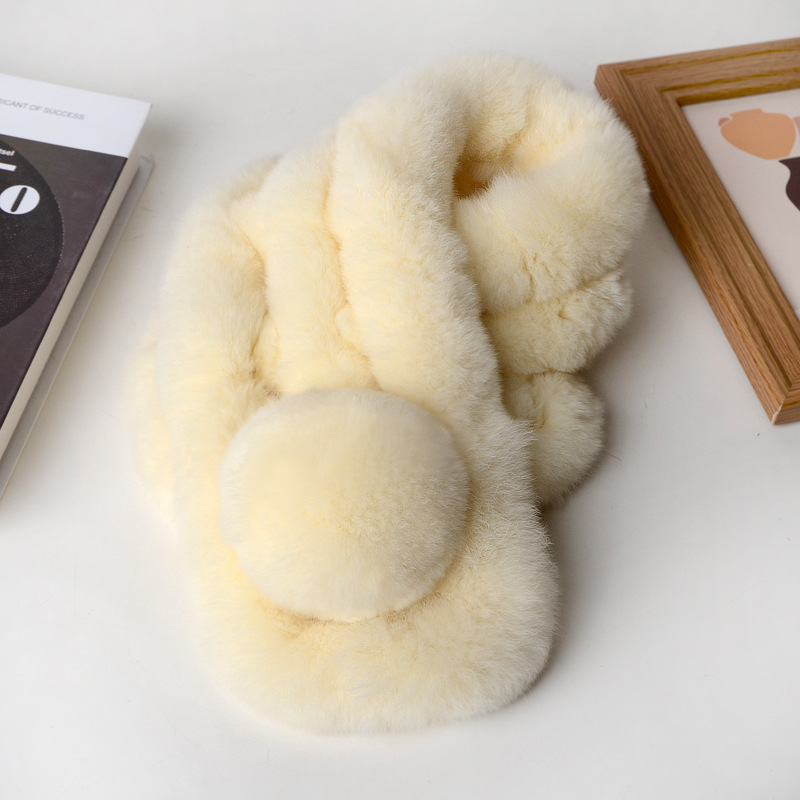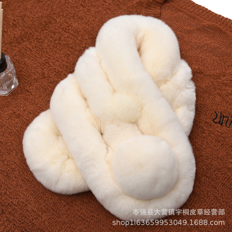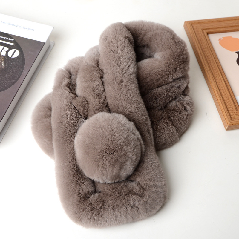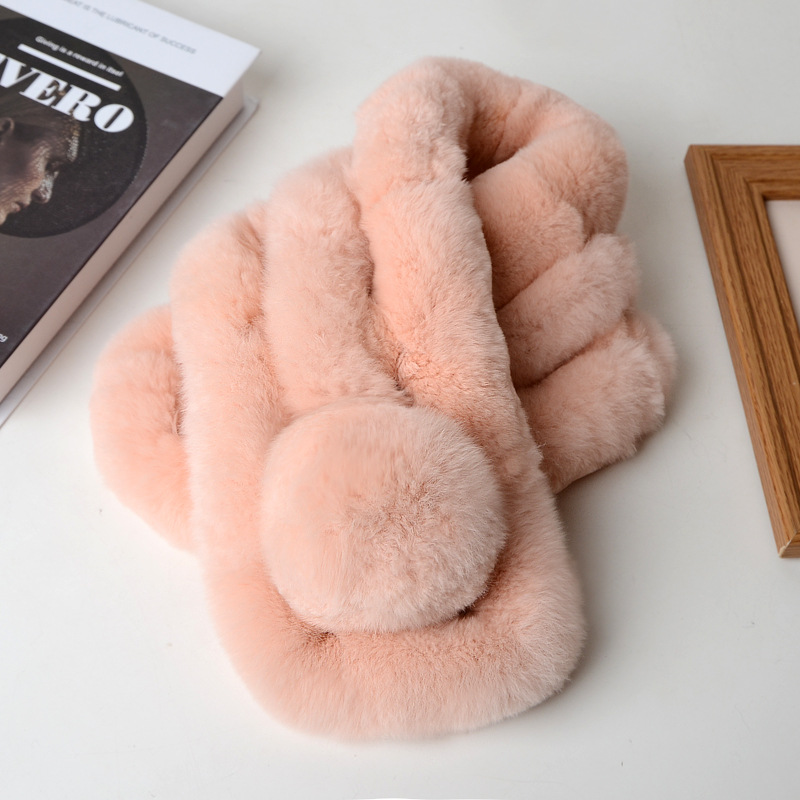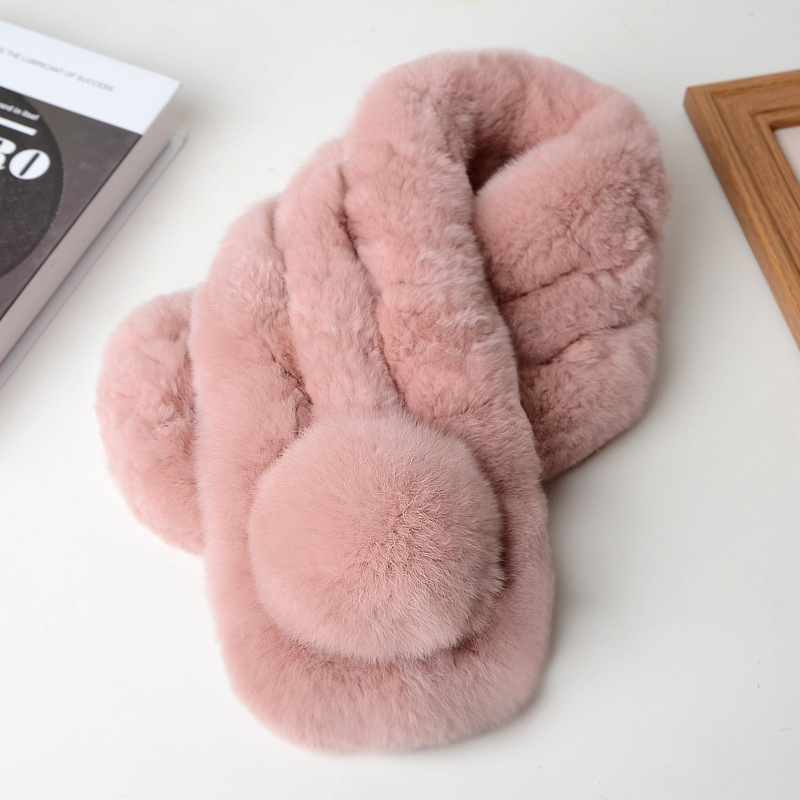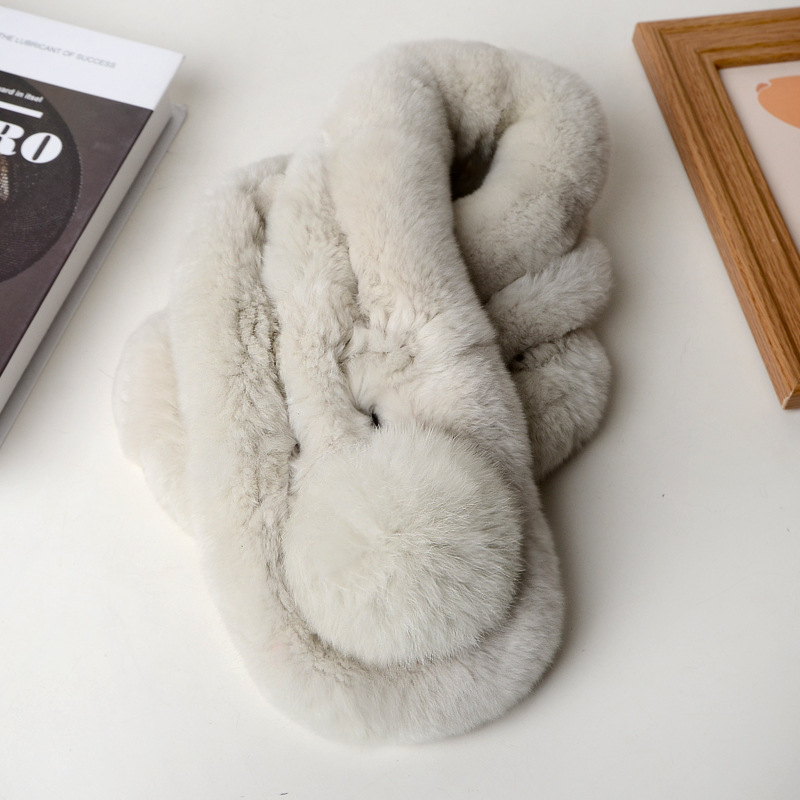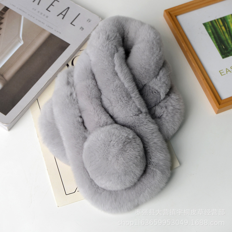 렉스 토끼 모피 스카프 겨울 따뜻한 숙녀 짧은 단색 가죽 잔디 3 튜브 스카프 볼 모피 스카프 세트 도매스토어 가기