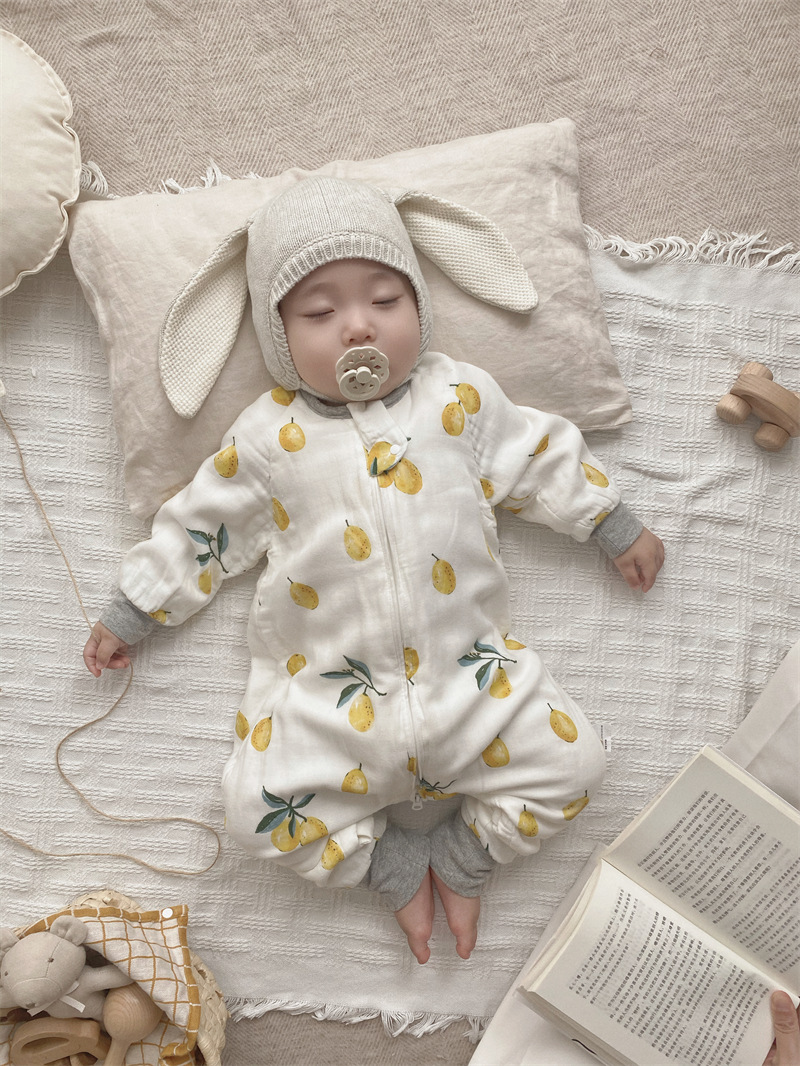 가을 겨울 대나무 면 6겹 분리형 잠옷 유아용 발차기 방지 이불 신생아 원피스 수면조끼 피부 친화적 대나무 면