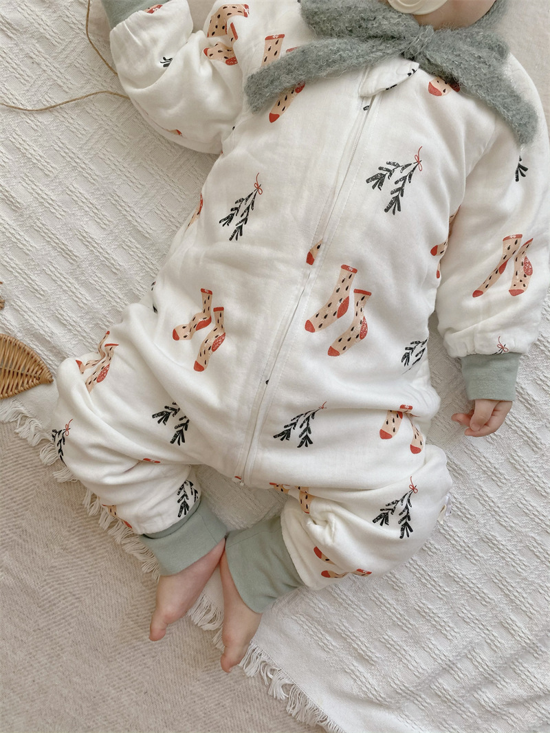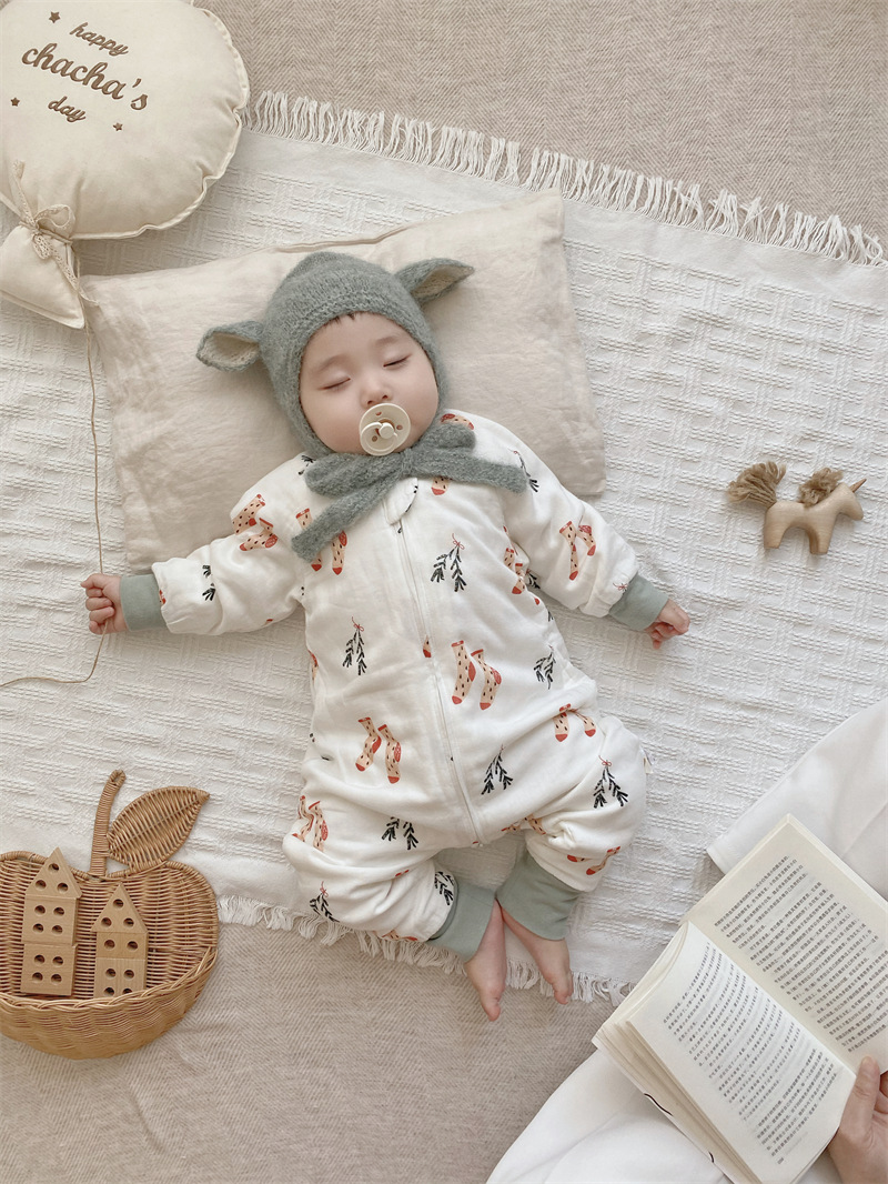 가을 겨울 대나무 면 6겹 분리형 잠옷 유아용 발차기 방지 이불 신생아 원피스 수면조끼 피부 친화적 대나무 면스토어 가기