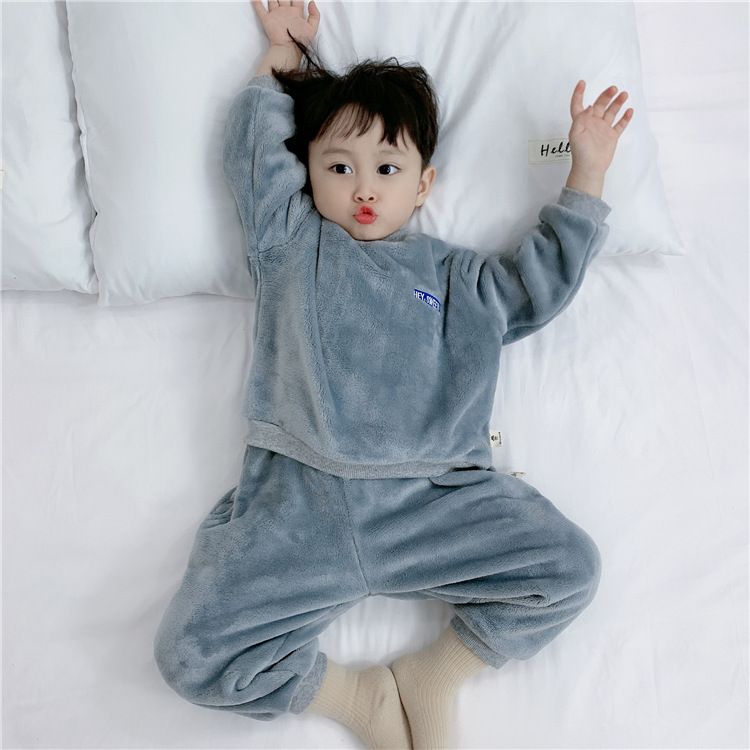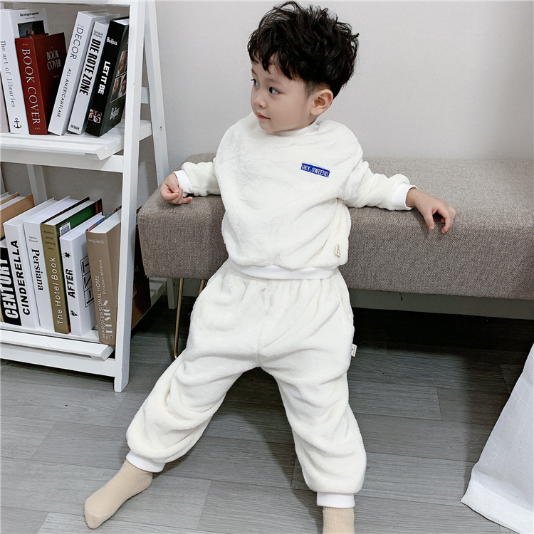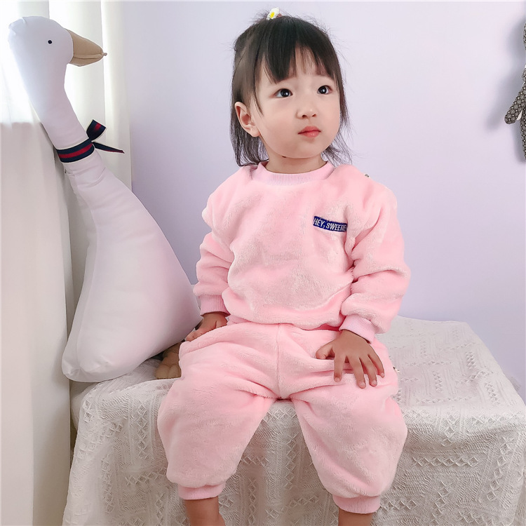 가을과 겨울 어린이 플란넬 세트 기모 두꺼운 소년과 소녀 봉제 잠옷 어린이 산호 양털 가정 옷스토어 가기